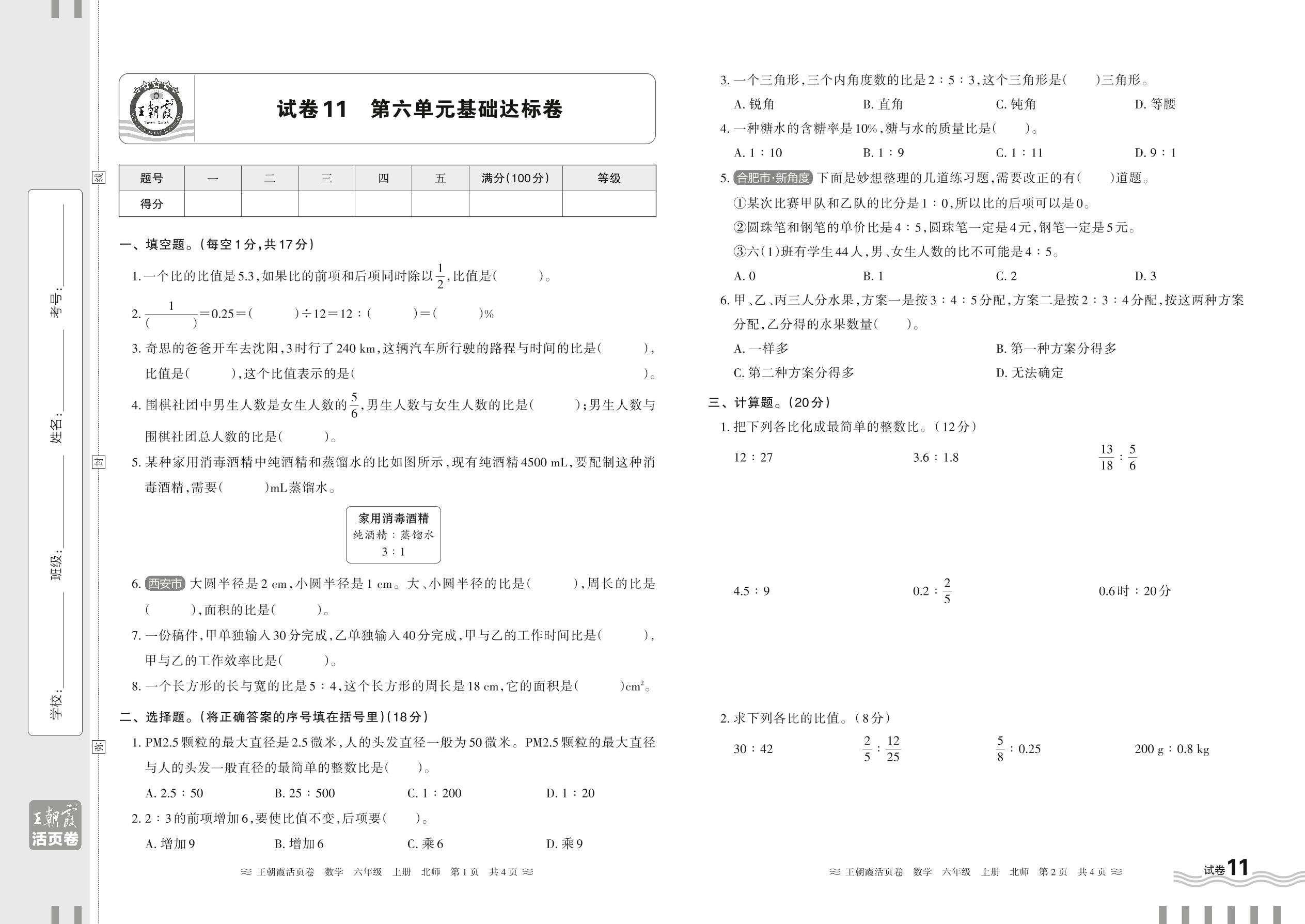 2024秋上册六年级数学北师版 第六单元基础达标卷【11】