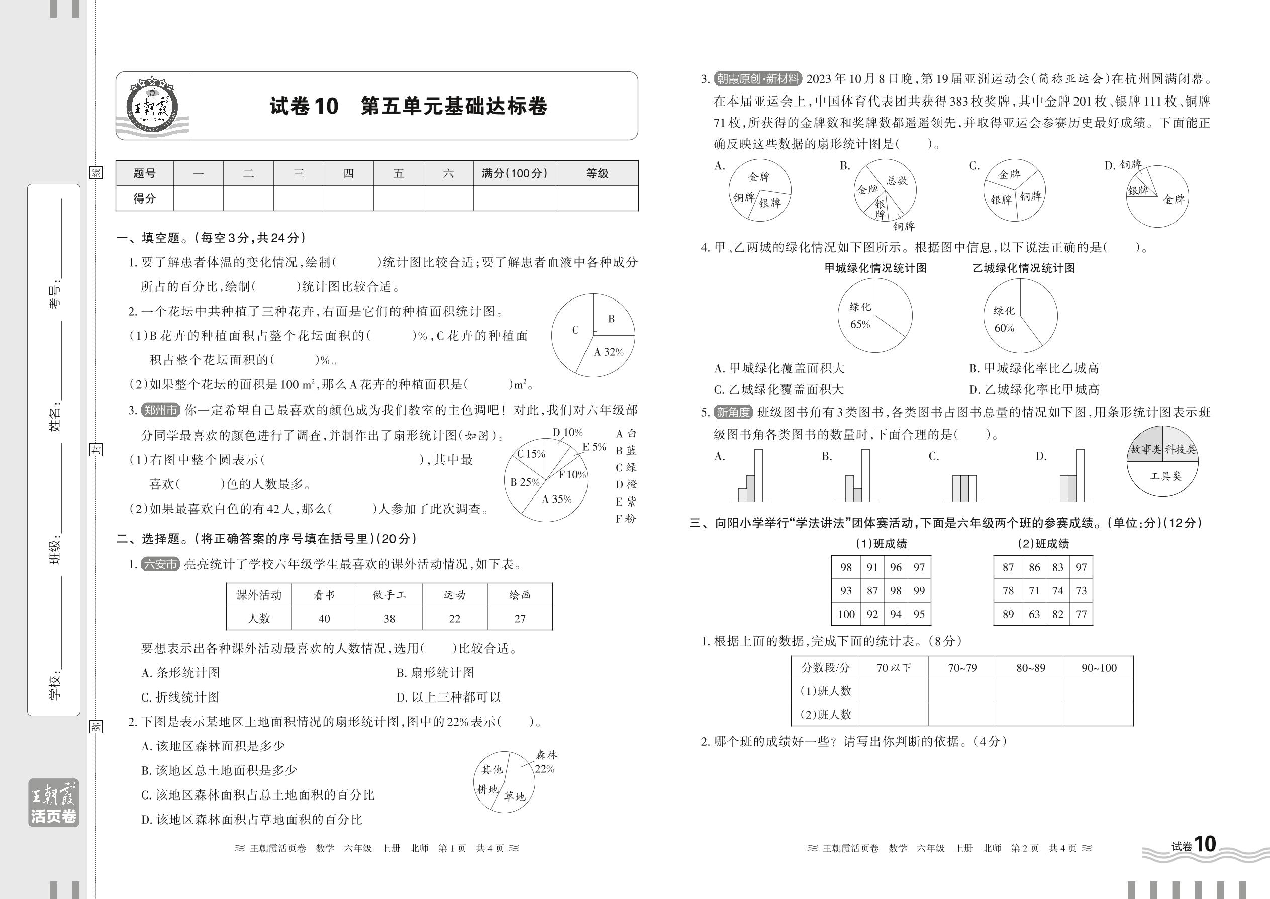 2024秋上册六年级数学北师版 第五单元基础达标卷【10】