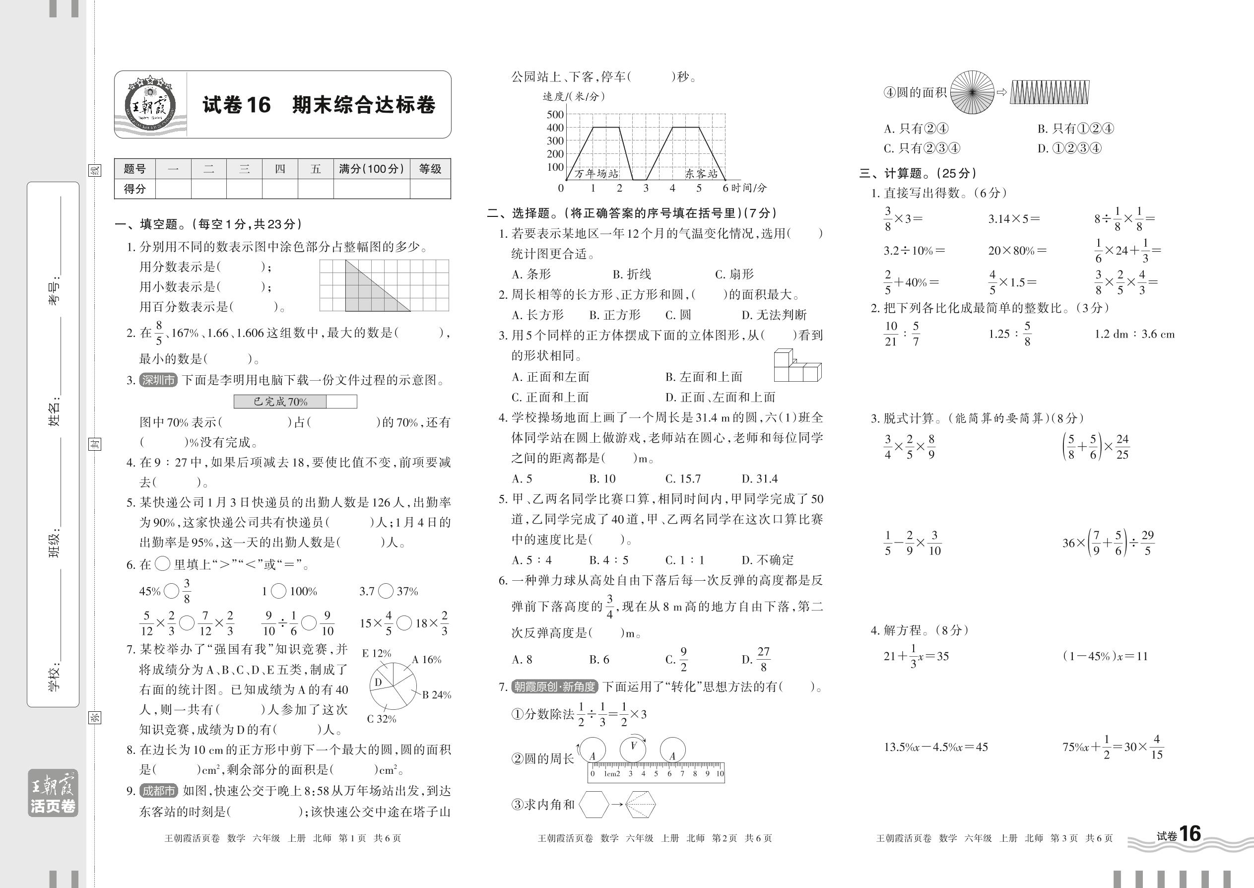 2024秋上册六年级数学北师版 期末综合达标卷【16】