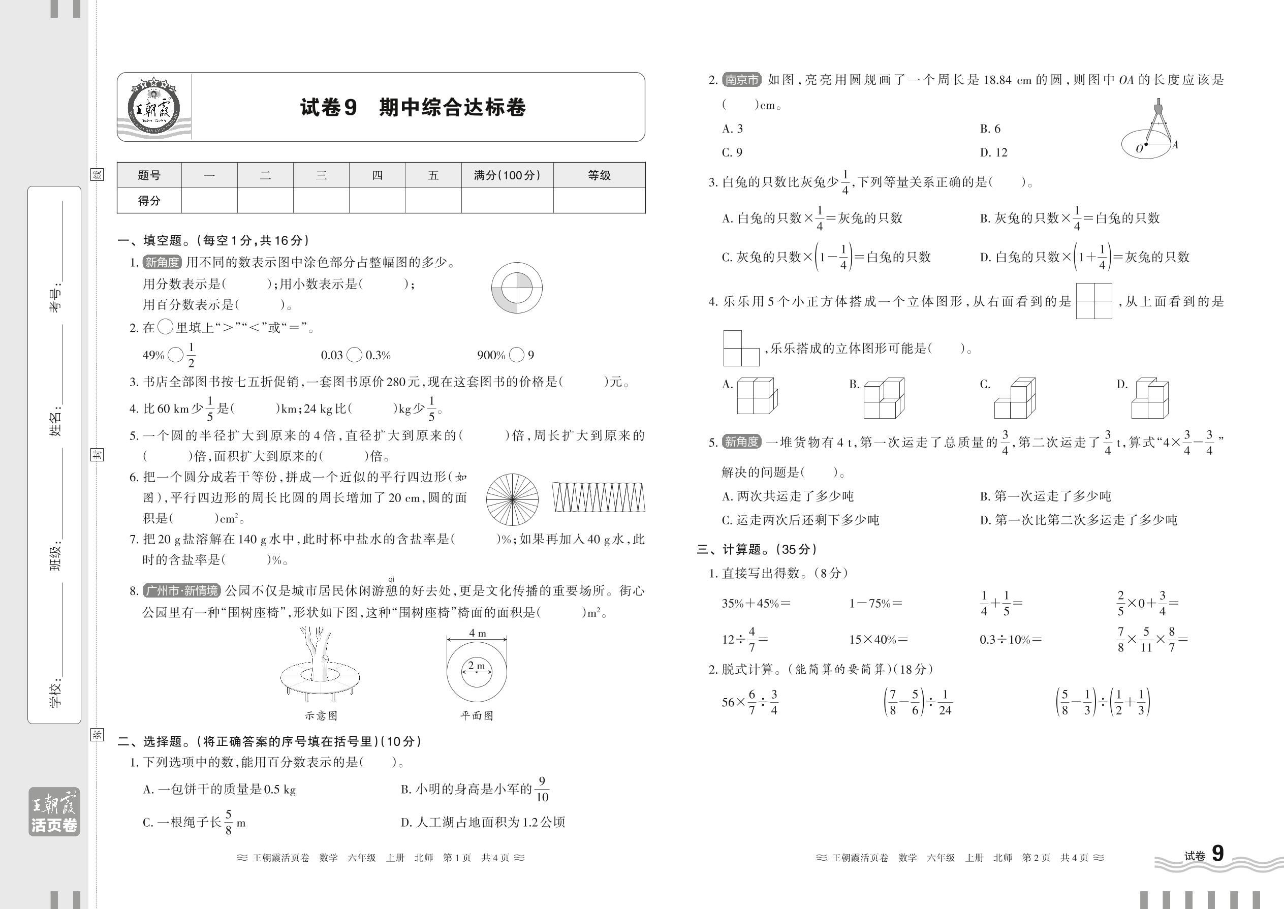 2024秋上册六年级数学北师版 期中综合达标卷【9】