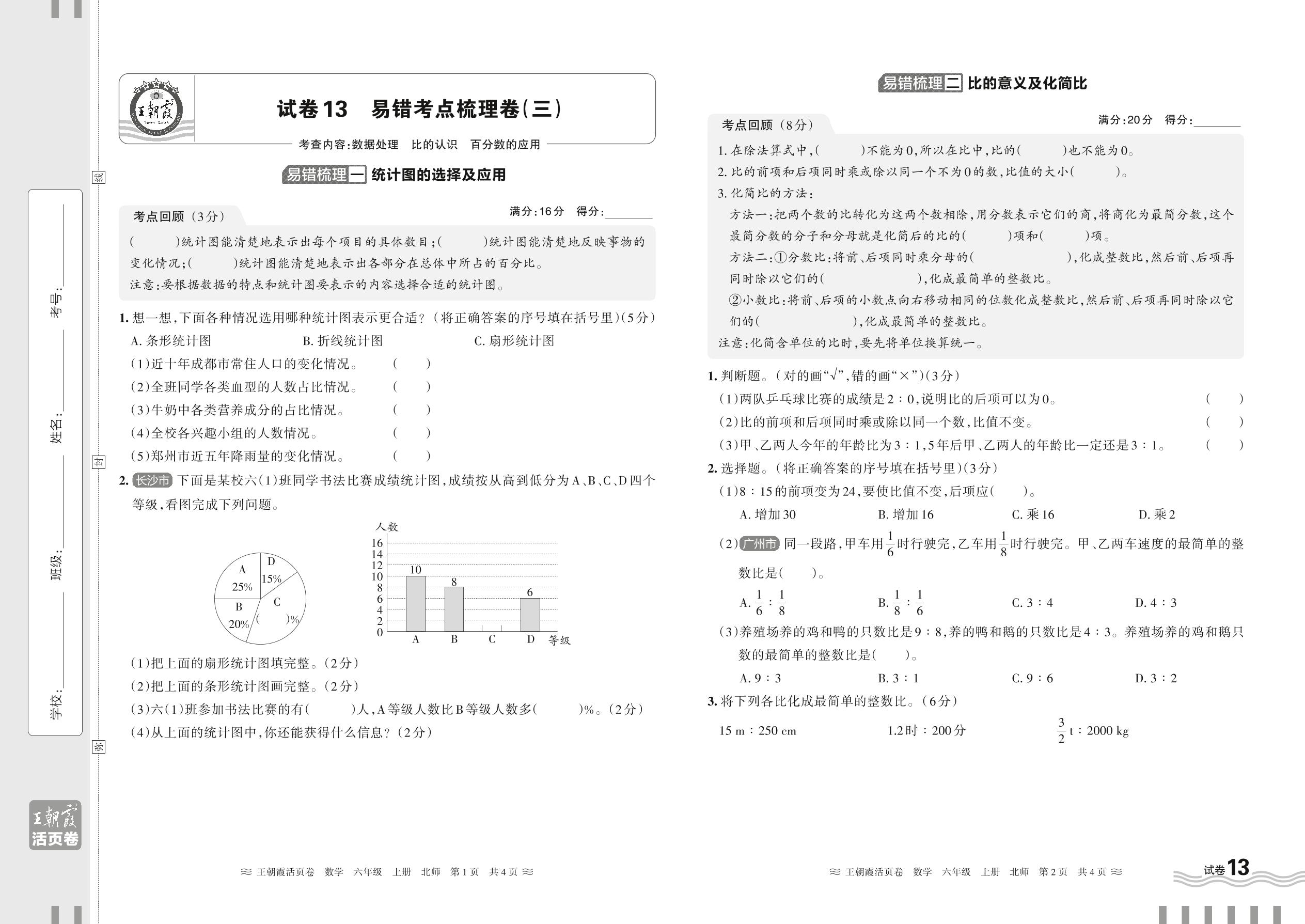 2024秋上册六年级数学北师版 易错考点梳理卷——数据处理 比的认识 百分数的应用【13】