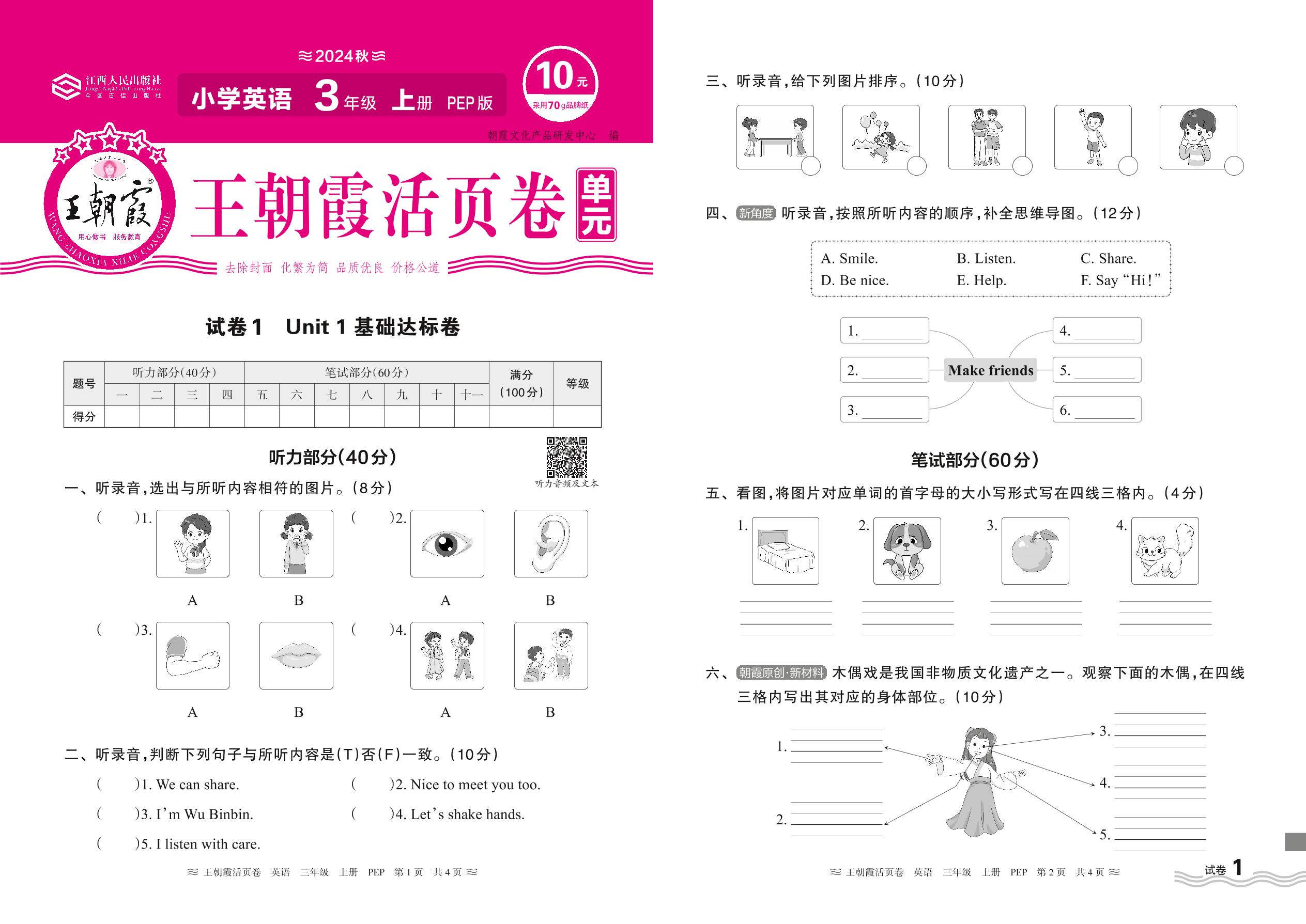 三年级英语人教PEP版(三起始)(2024)上册单元卷