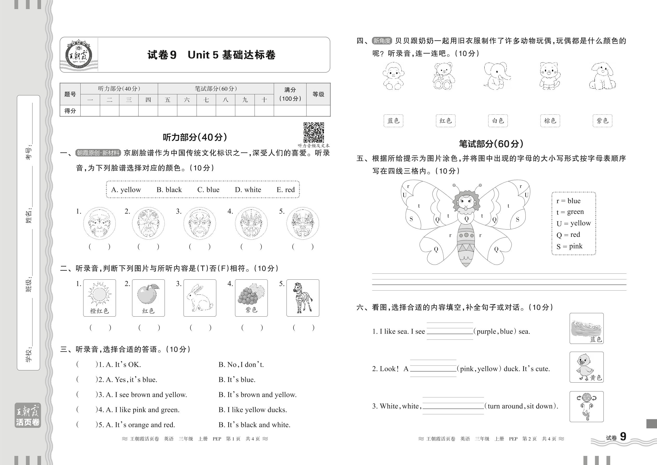 2024秋上册三年级英语人教PEP版(三起始) Unit 5 基础达标卷【9】