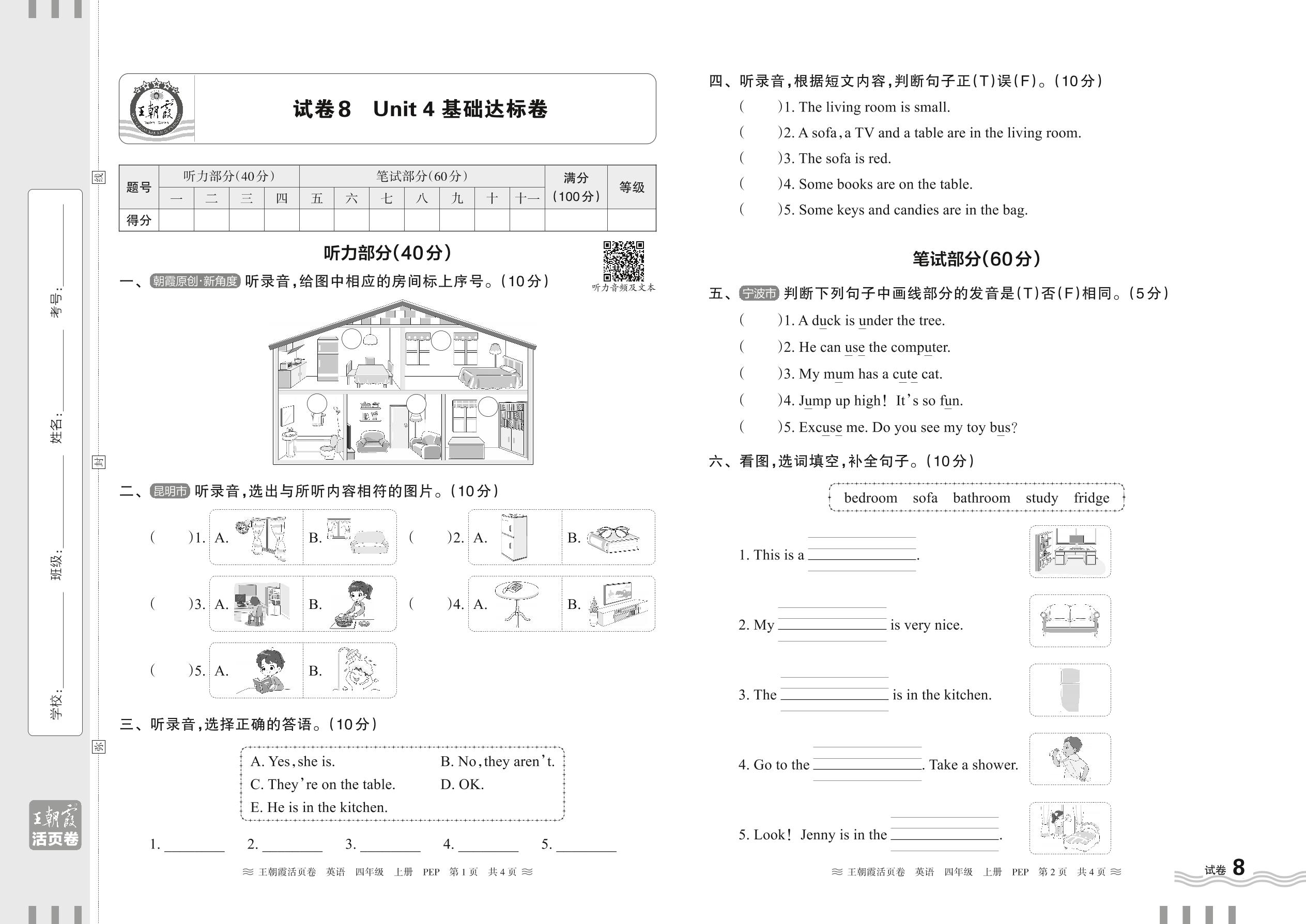 2024秋上册四年级英语人教PEP版(三起始) Unit 4 基础达标卷【8】