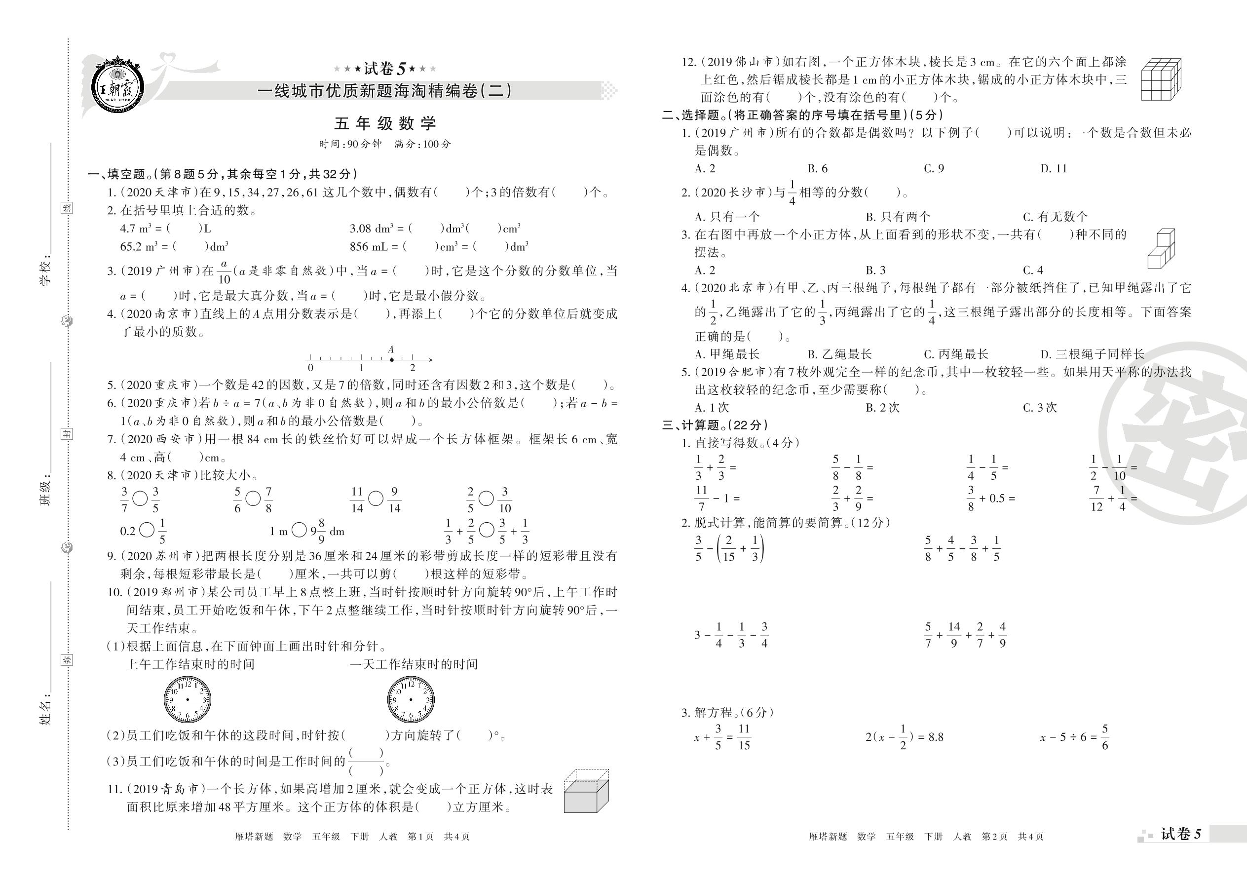 王朝霞海淘期末精编卷五年级下册数学(人教版)_R210804161712【5】