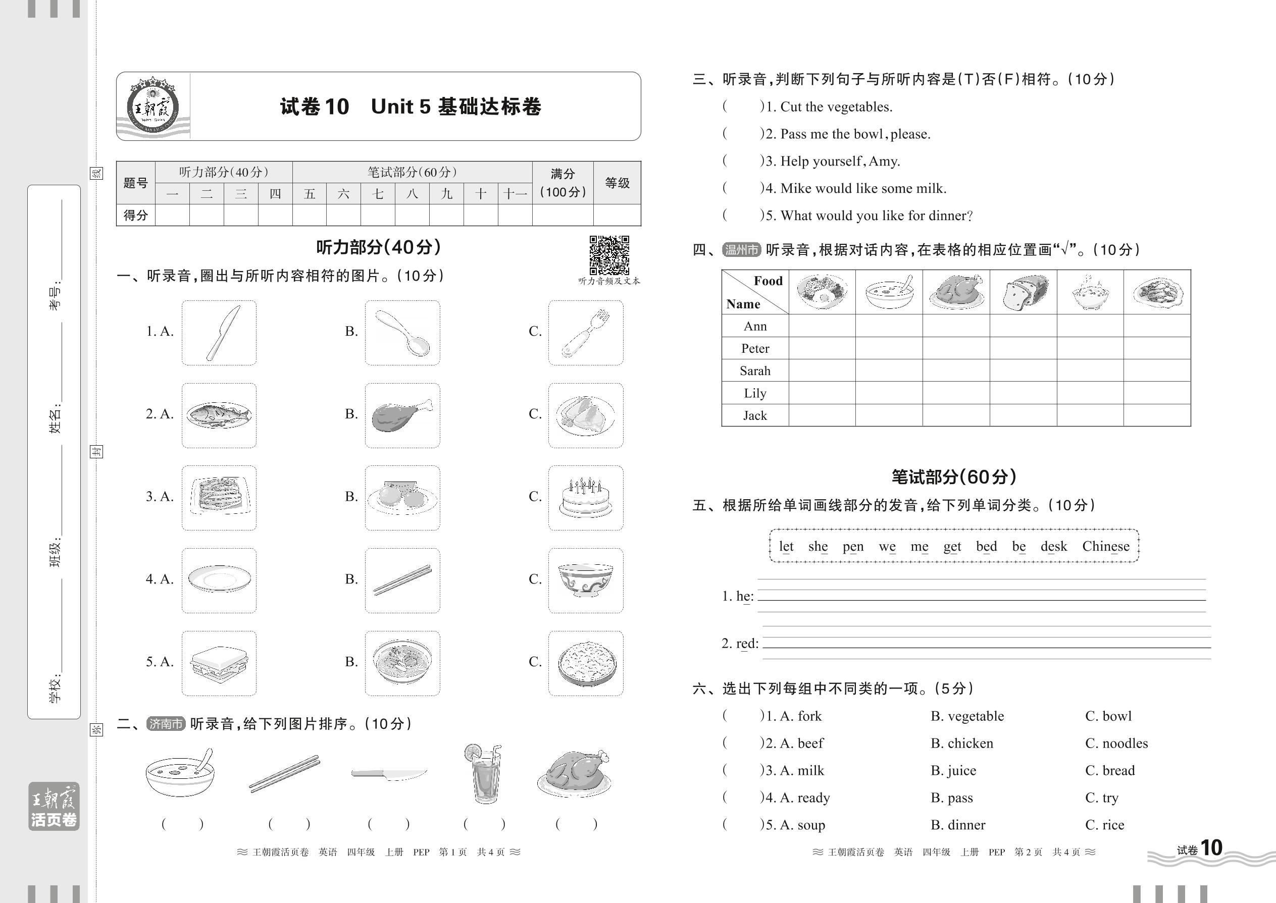 2024秋上册四年级英语人教PEP版(三起始) Unit 5 基础达标卷【10】