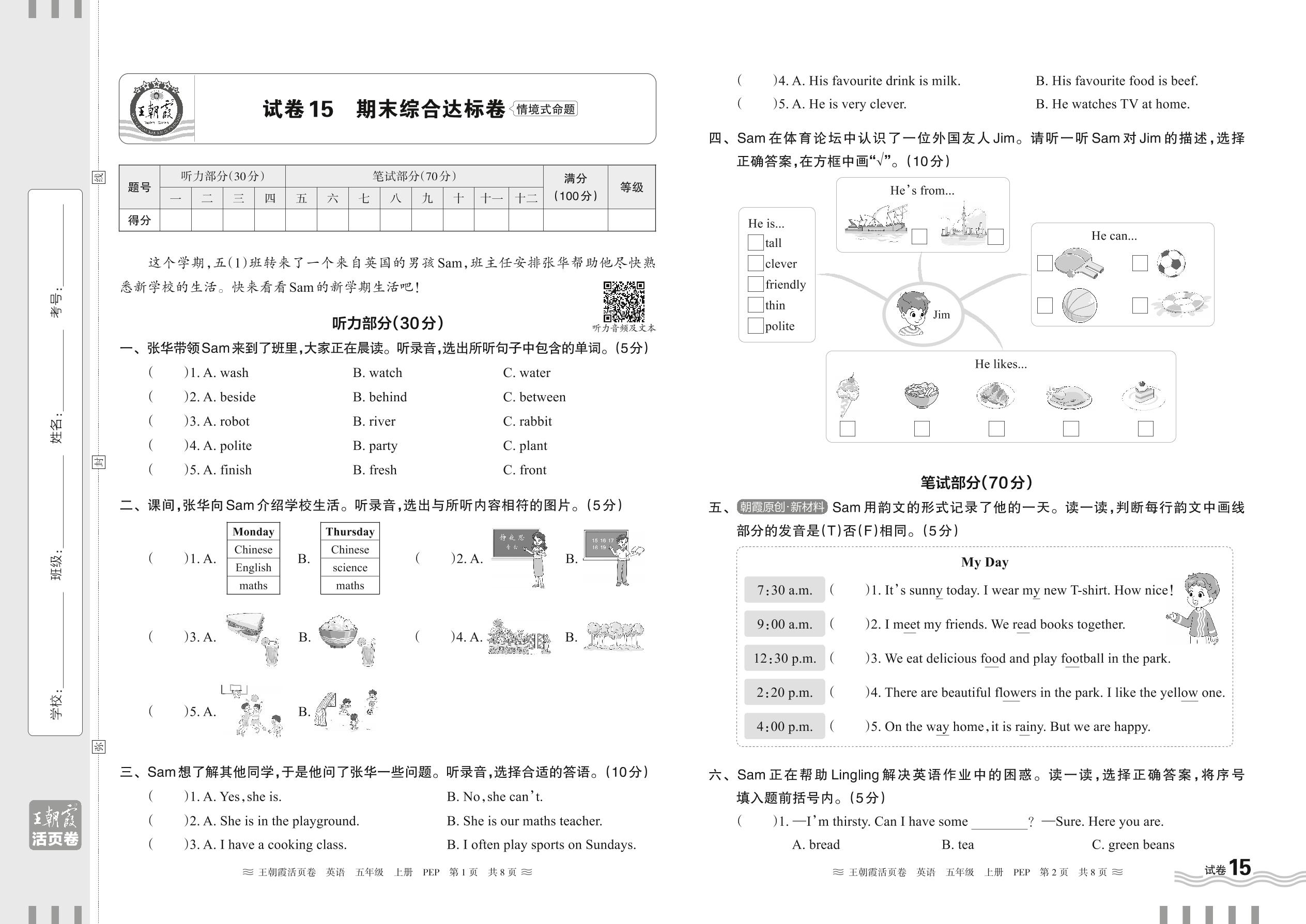 2024秋上册五年级英语人教PEP版(三起始) 期末综合达标卷【15】