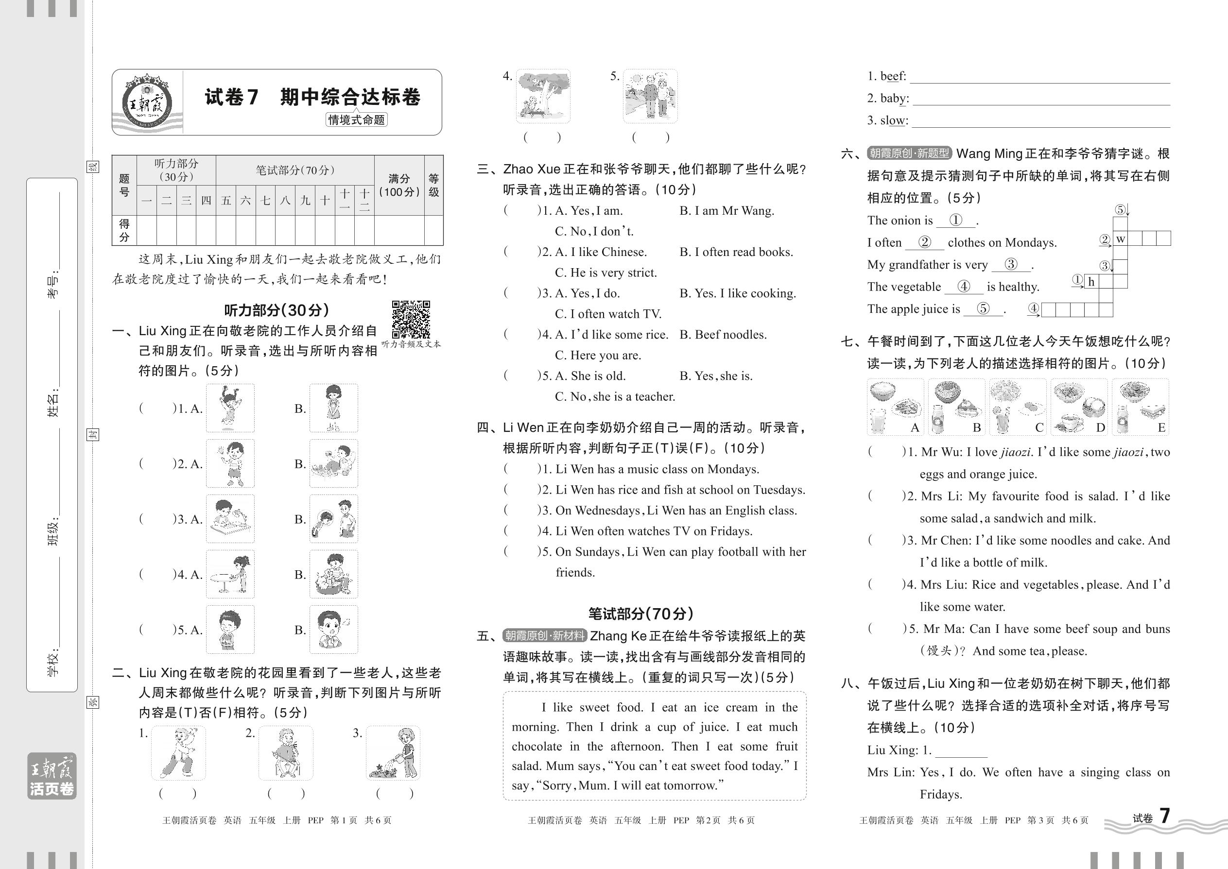 2024秋上册五年级英语人教PEP版(三起始) 期中综合达标卷【7】