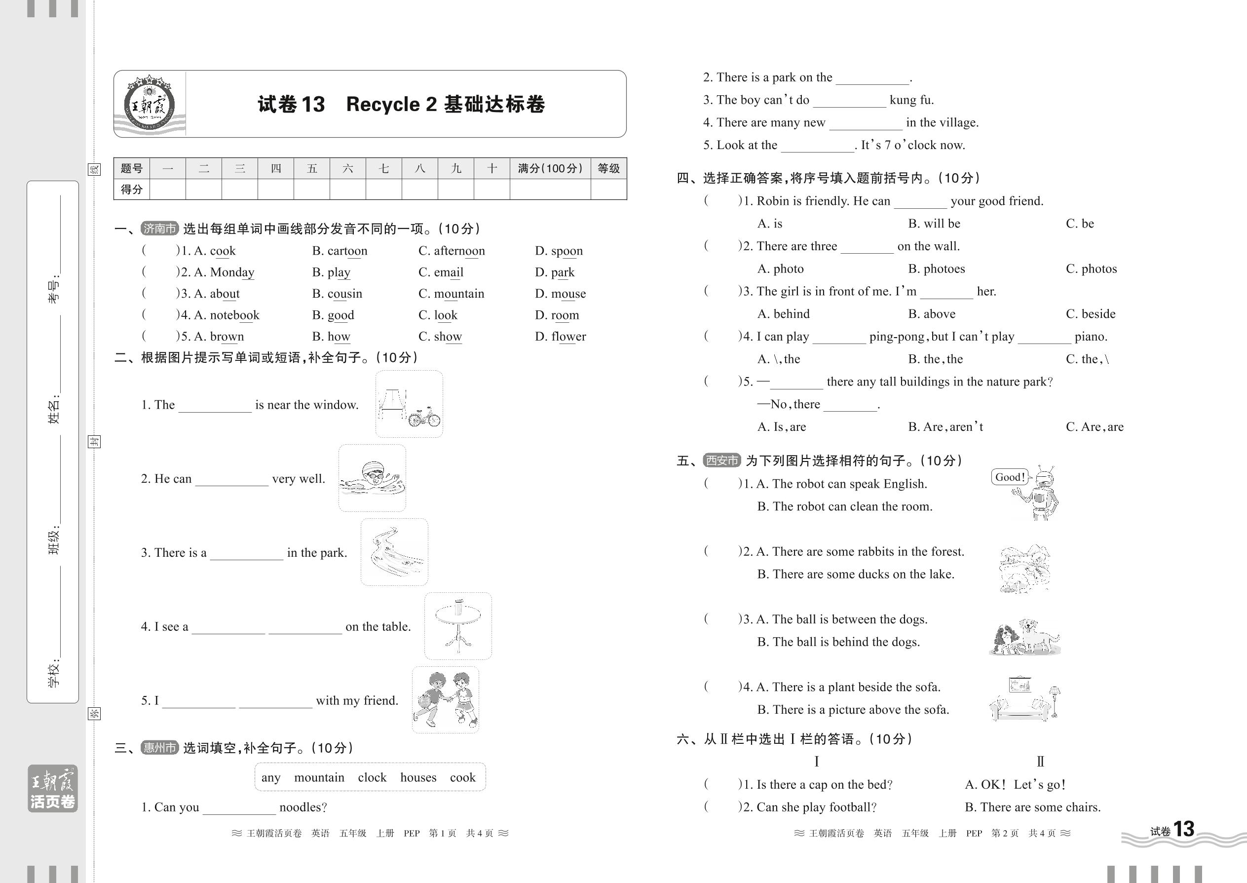 2024秋上册五年级英语人教PEP版(三起始) Recycle 2 基础达标卷【13】