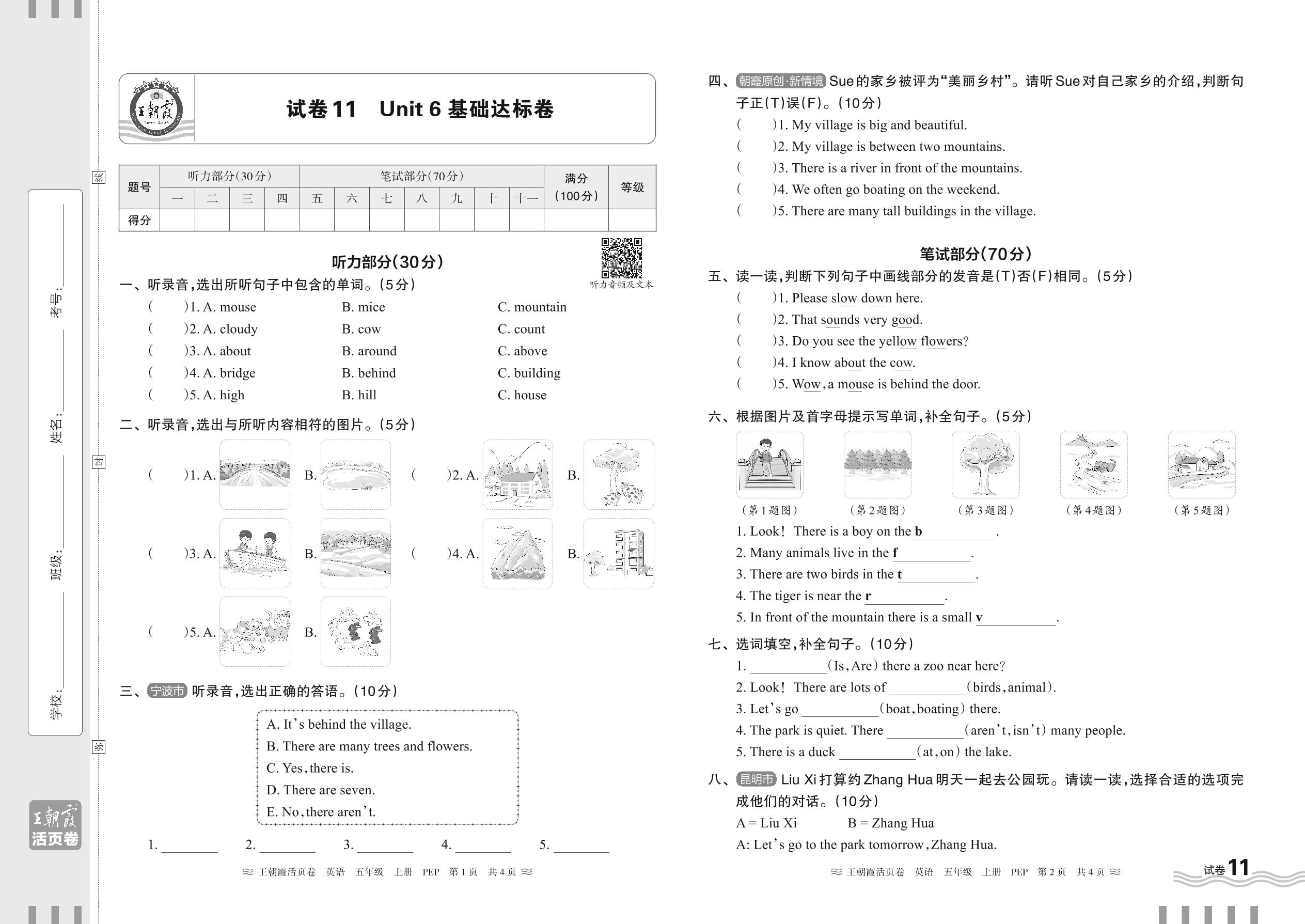 2024秋上册五年级英语人教PEP版(三起始) Unit 6 基础达标卷【11】