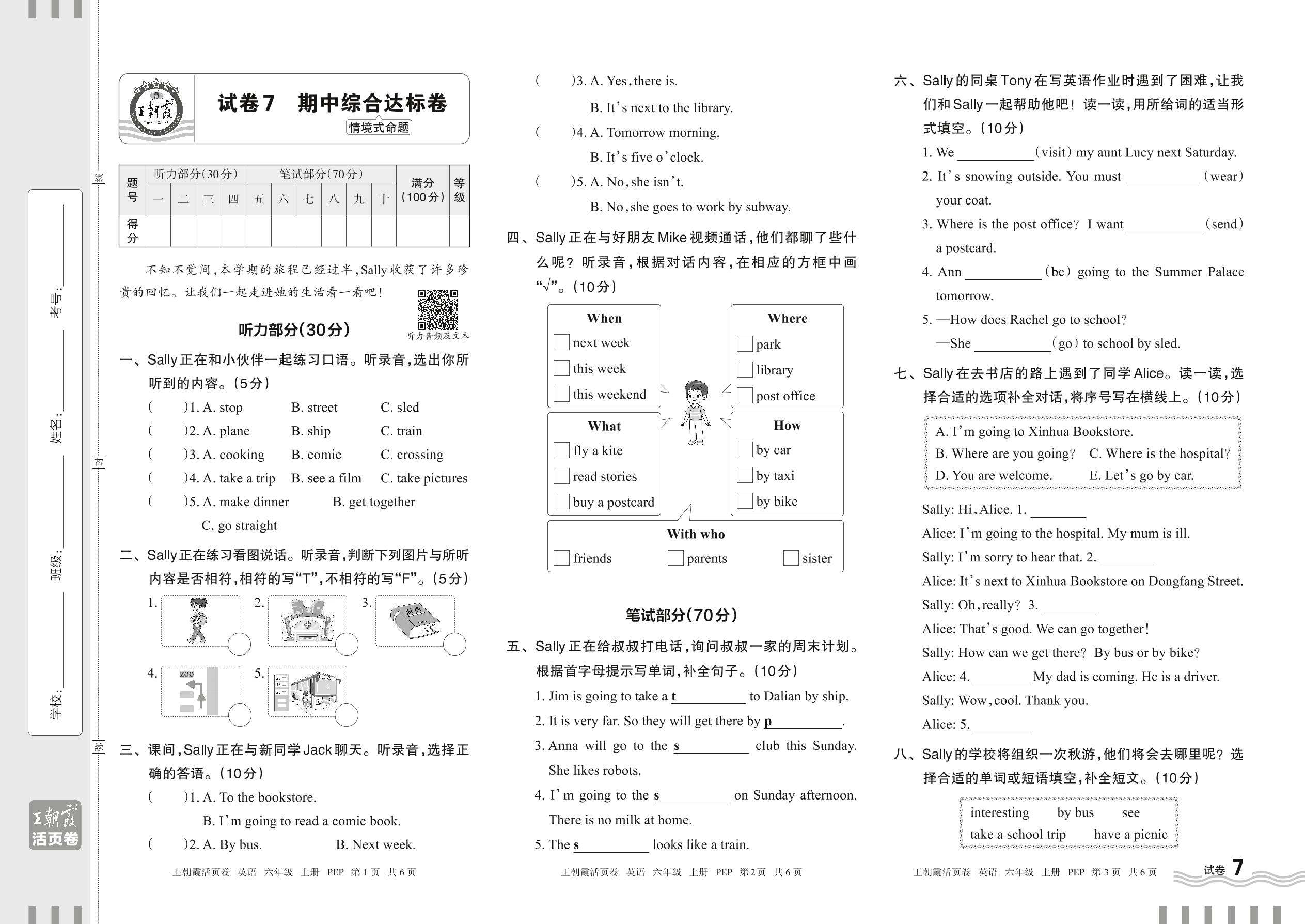 2024秋上册六年级英语人教PEP版(三起始) 期中综合达标卷【7】