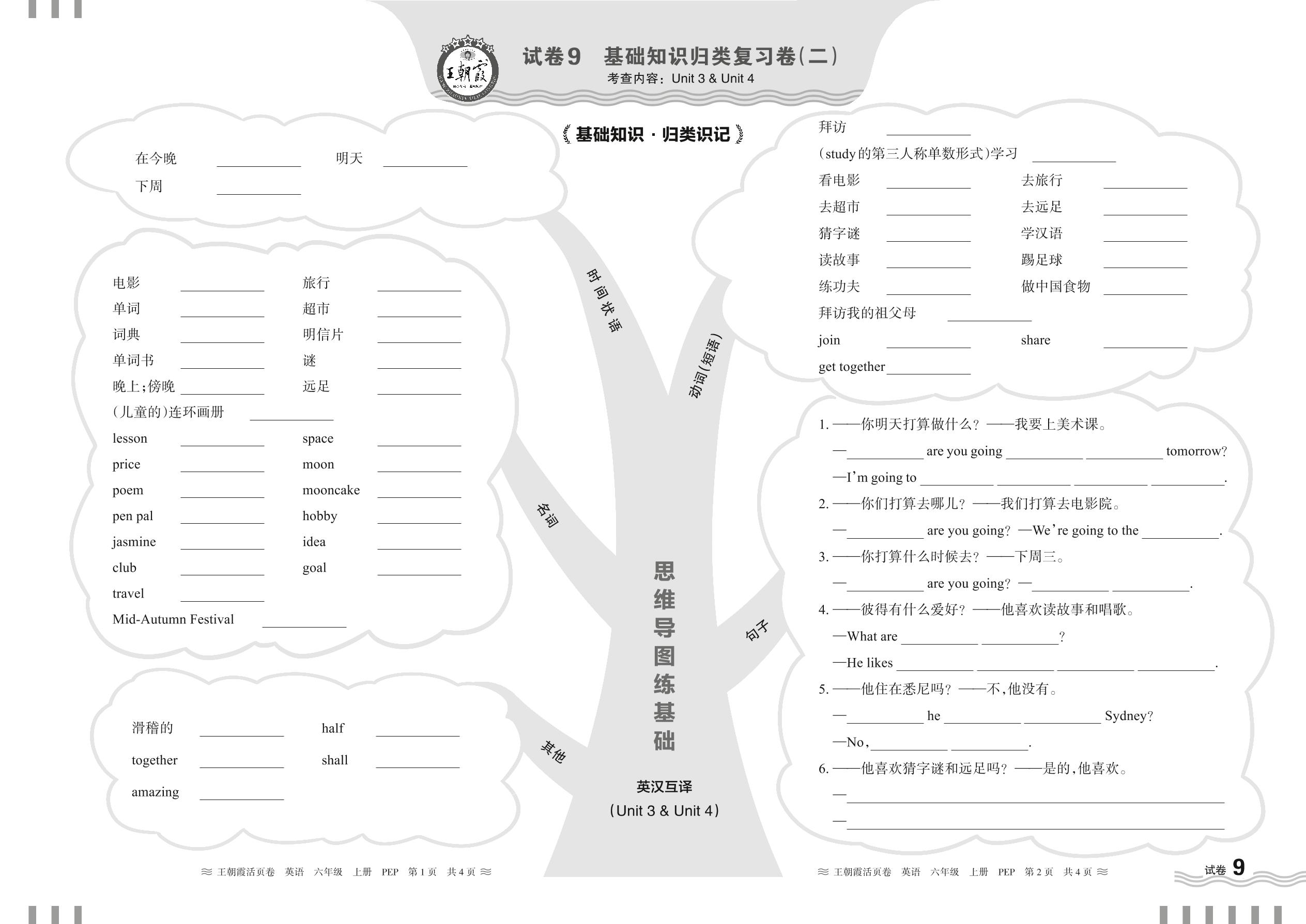 2024秋上册六年级英语人教PEP版(三起始) Unit 3 & Unit 4 基础知识归类复习卷【9】