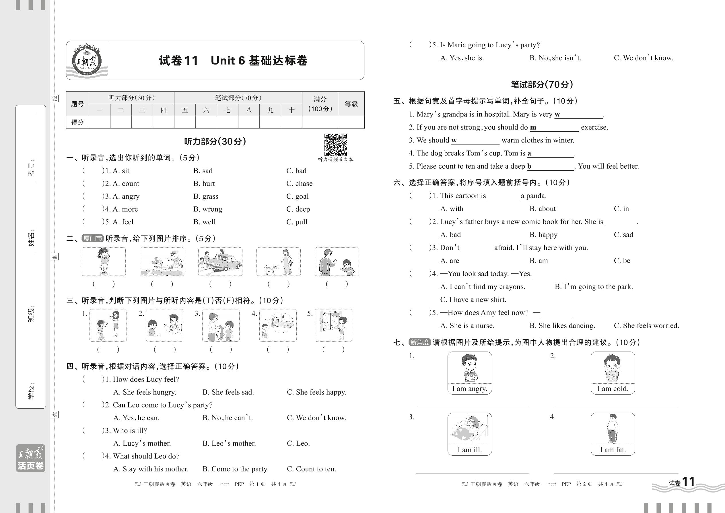 2024秋上册六年级英语人教PEP版(三起始) Unit 6 基础达标卷【11】