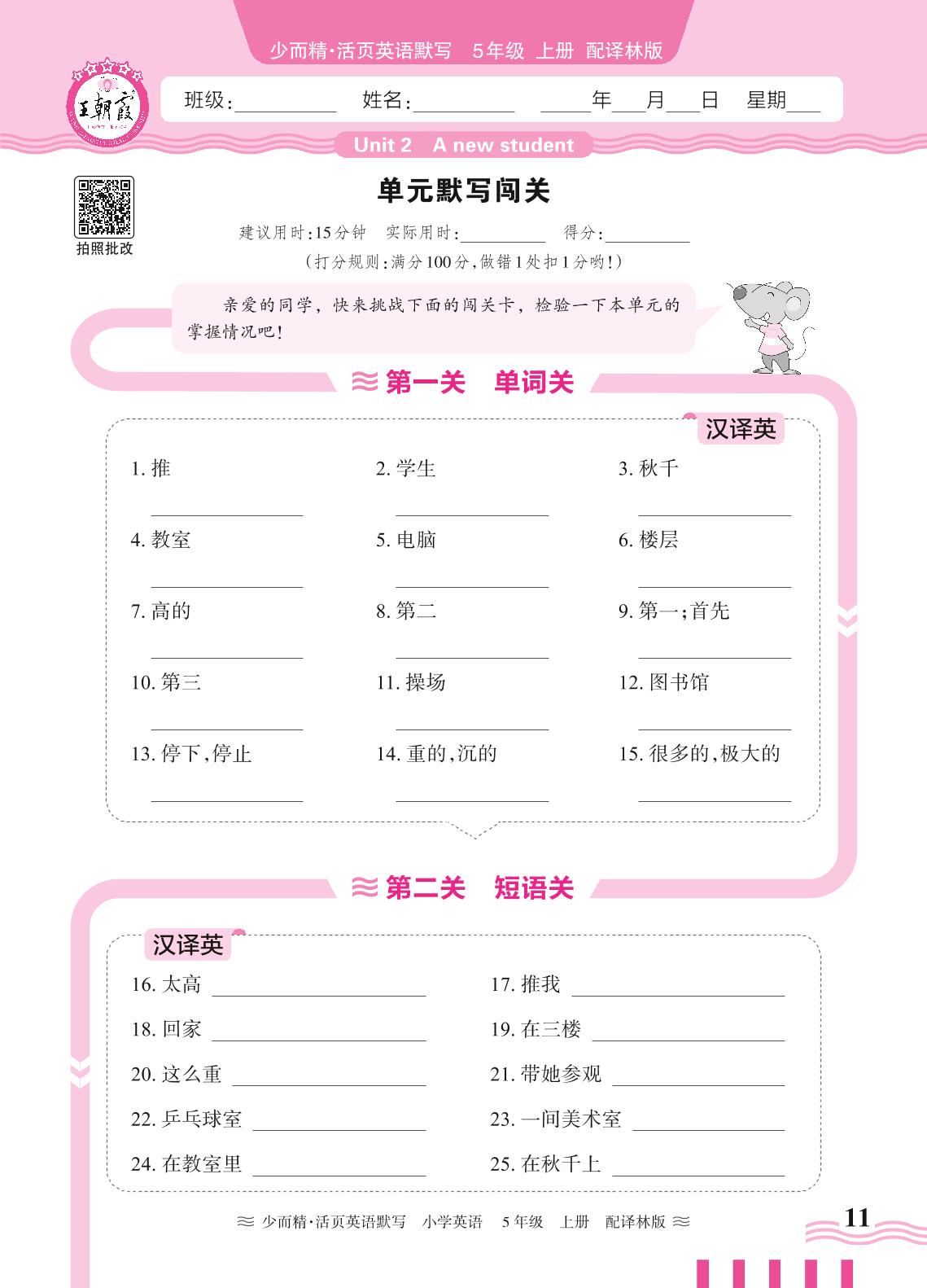2024秋上册五年级英语译林版(三起始) Unit 2 单元默写闯关