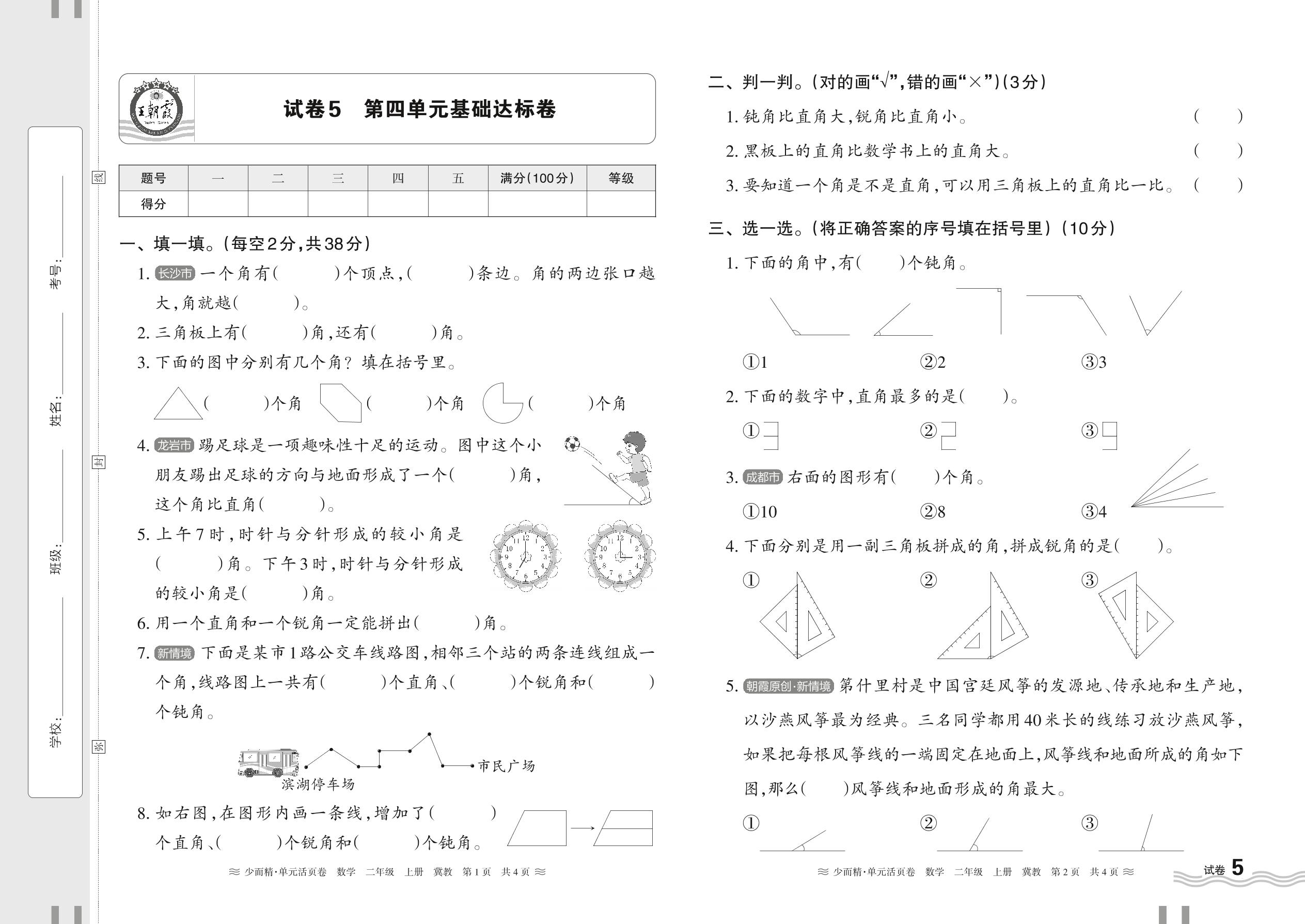 2024秋上册二年级数学冀教版 第四单元基础达标卷【5】