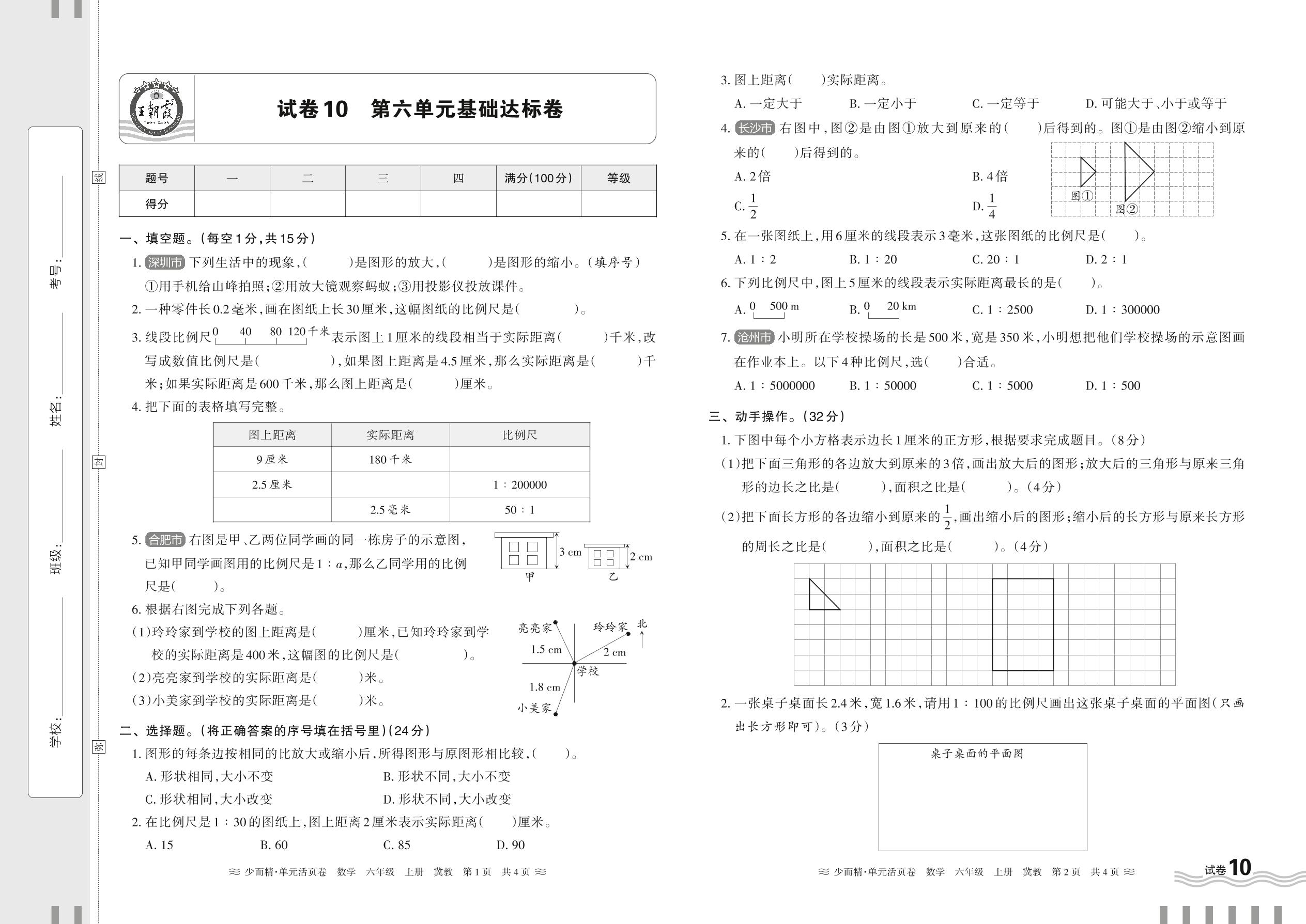 2024秋上册六年级数学冀教版 第六单元基础达标卷【10】
