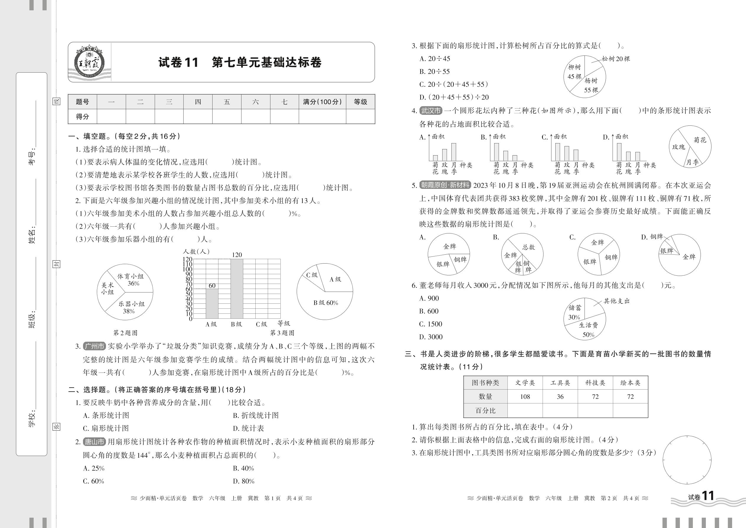 2024秋上册六年级数学冀教版 第七单元基础达标卷【11】