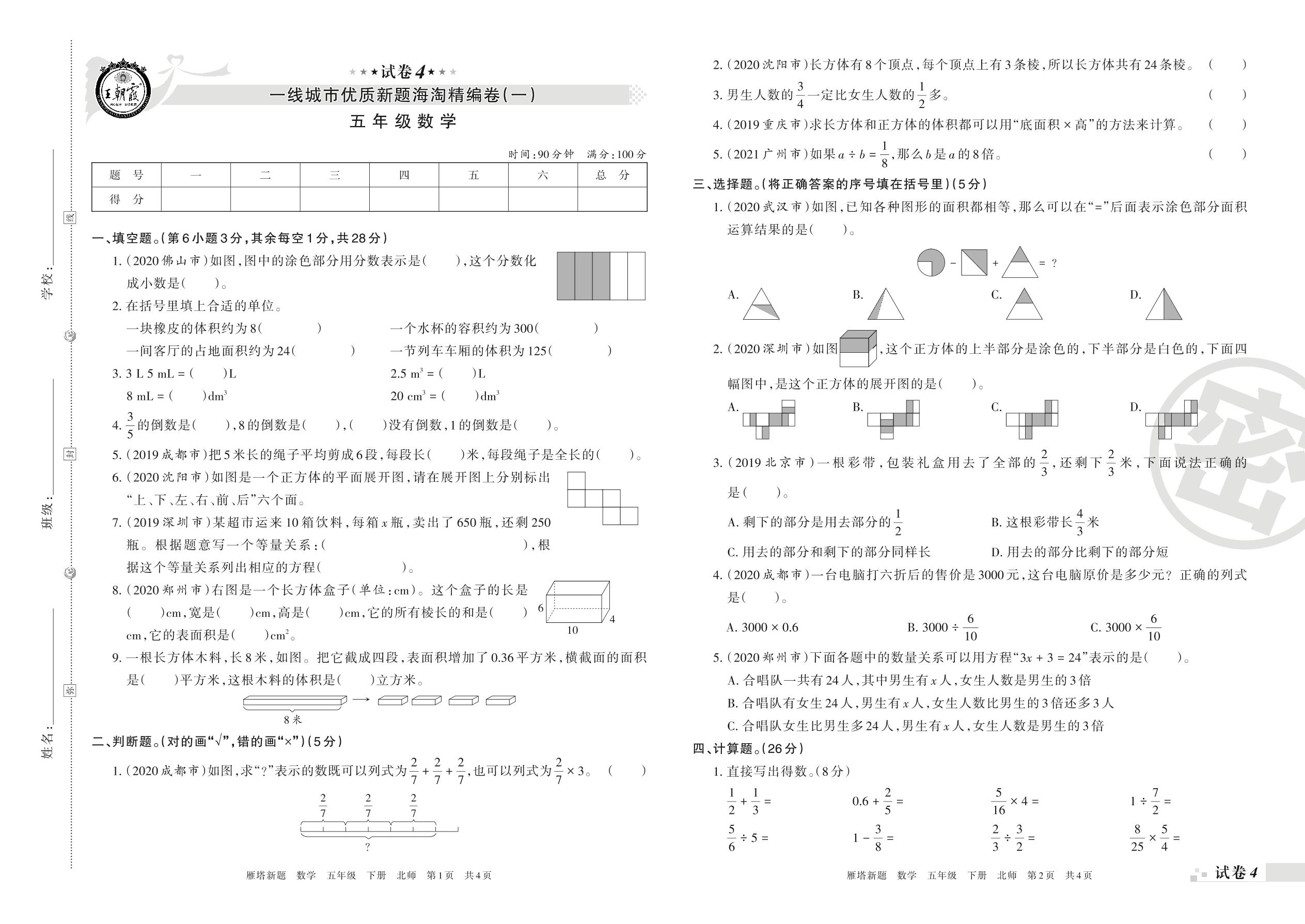 王朝霞海淘期末精编卷五年级下册数学(北师版)【4】
