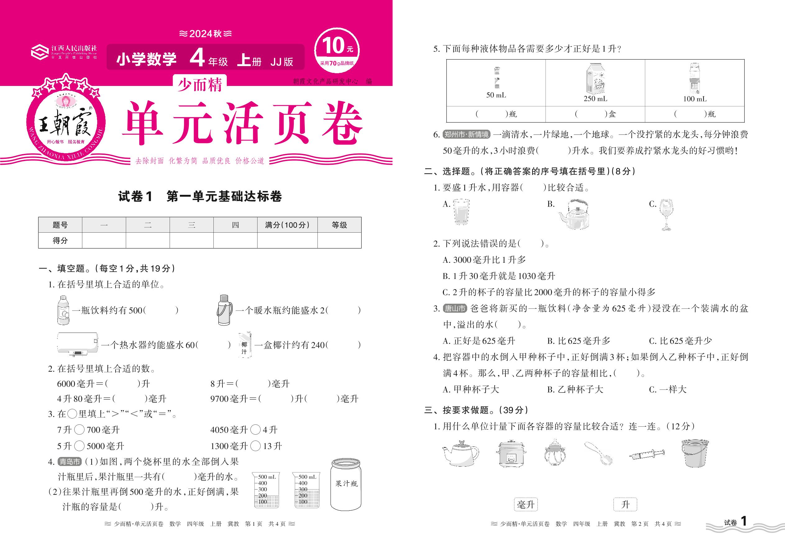 2024秋上册四年级数学冀教版 第一单元基础达标卷【1】