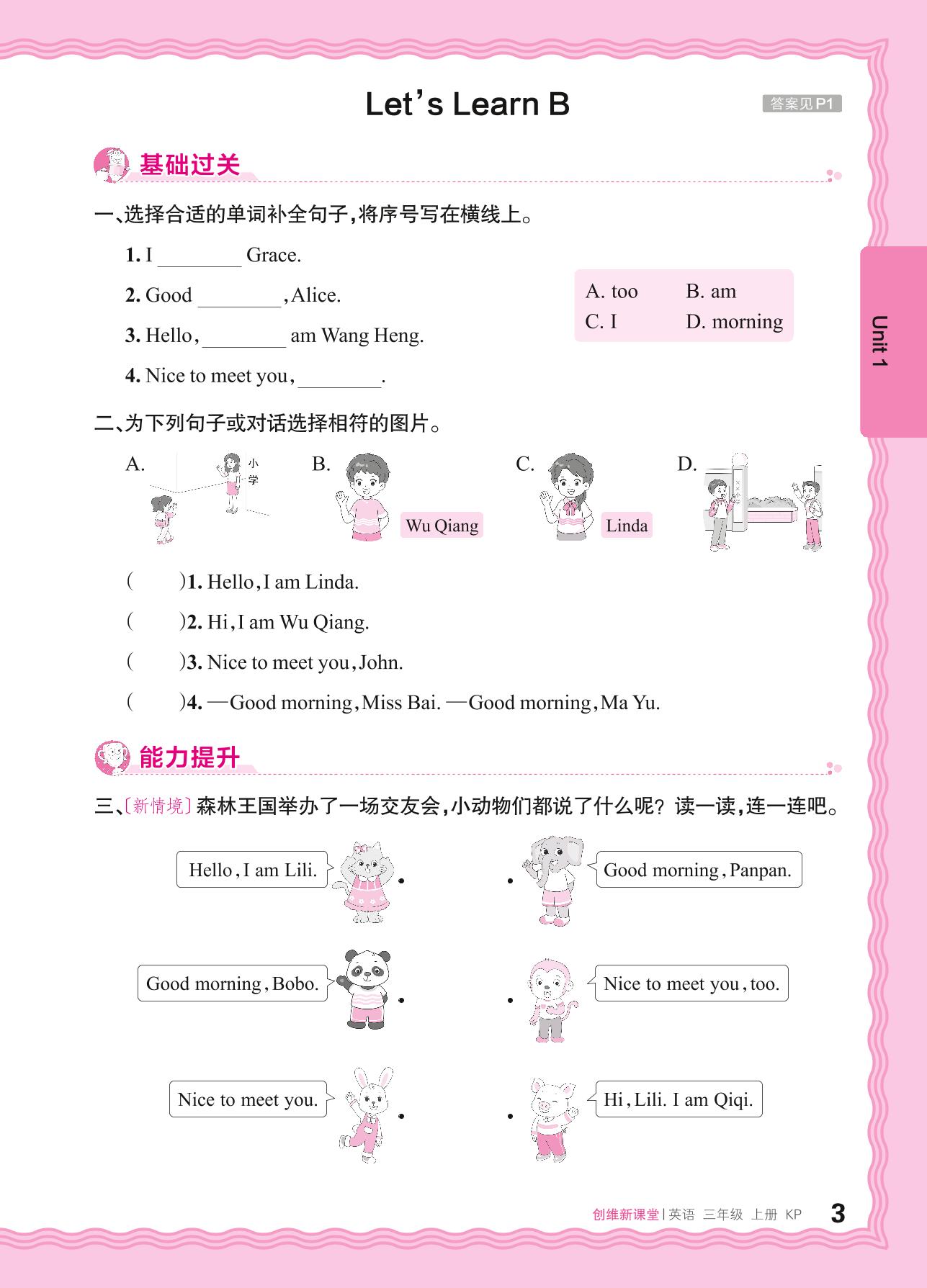 2024秋上册三年级英语科普版 Unit 1—Let's Learn B