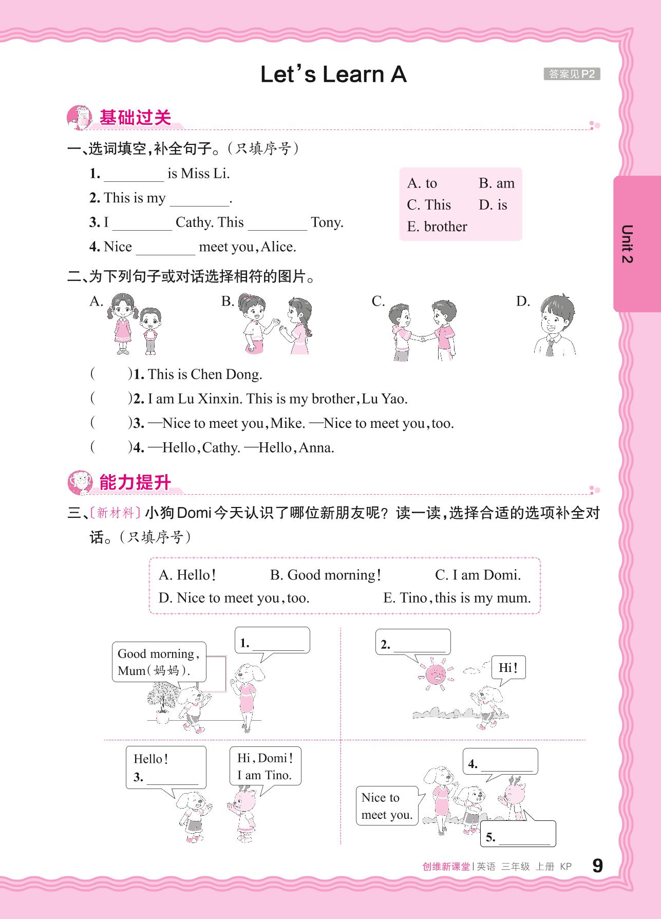 2024秋上册三年级英语科普版 Unit 2—Let's Learn A