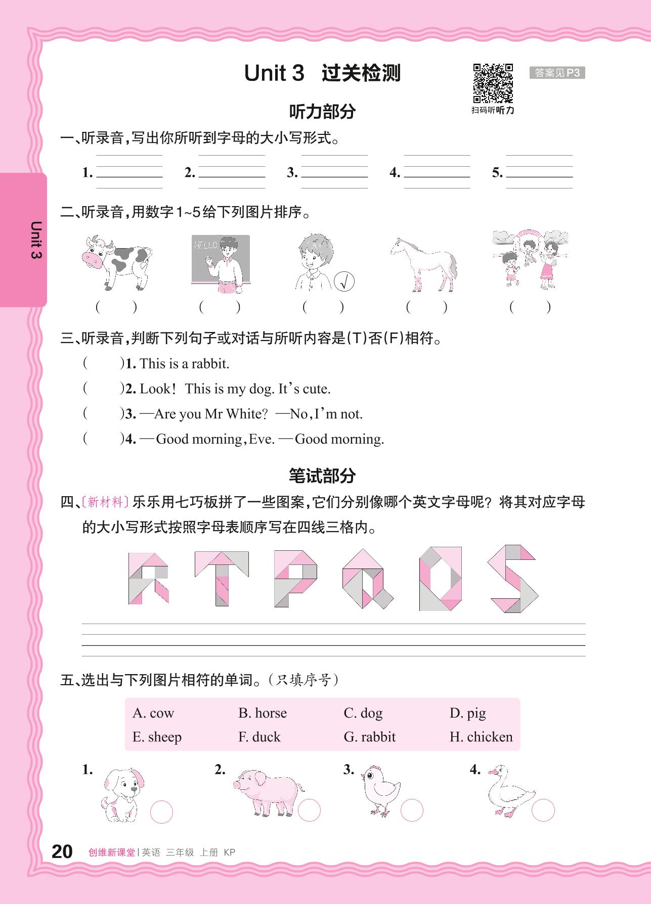 2024秋上册三年级英语科普版 Unit 3 过关检测