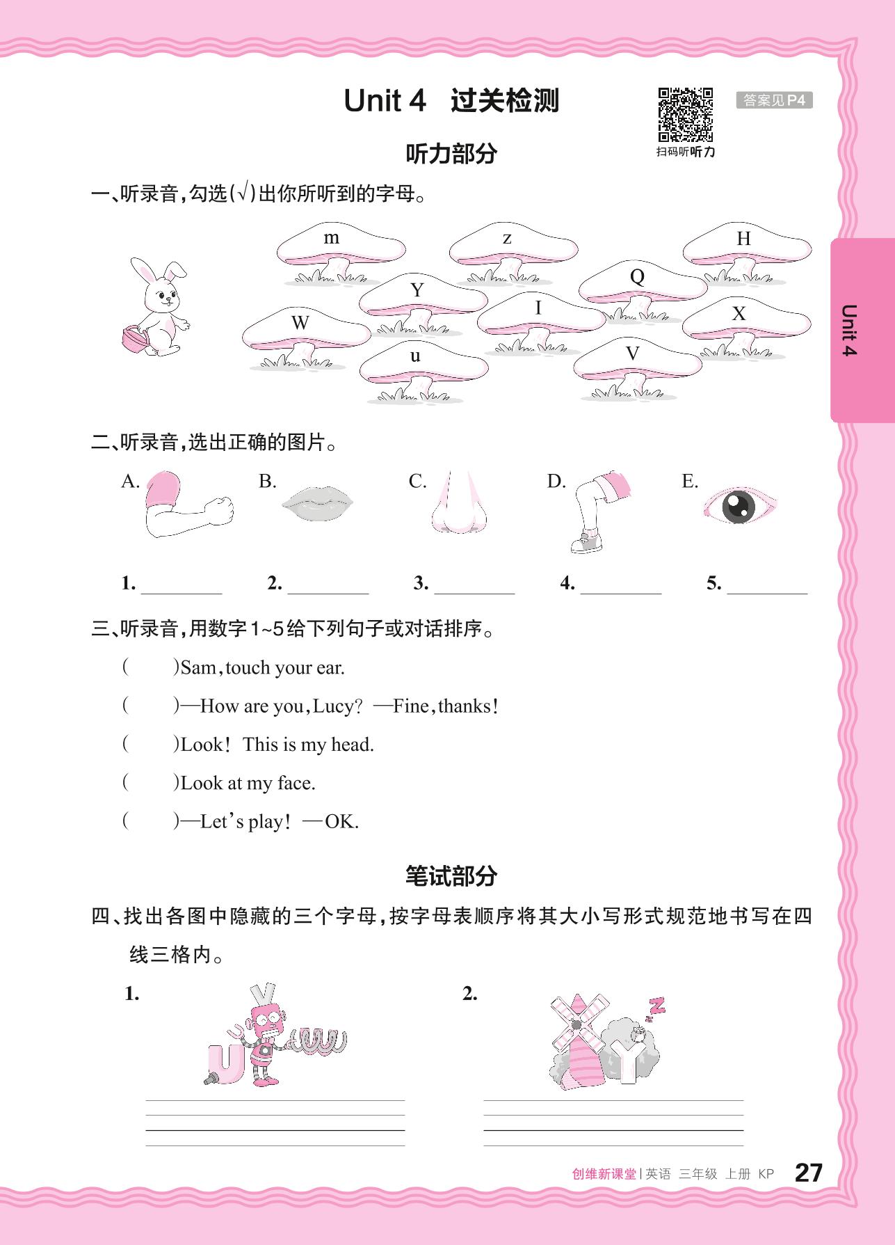 2024秋上册三年级英语科普版 Unit 4 过关检测