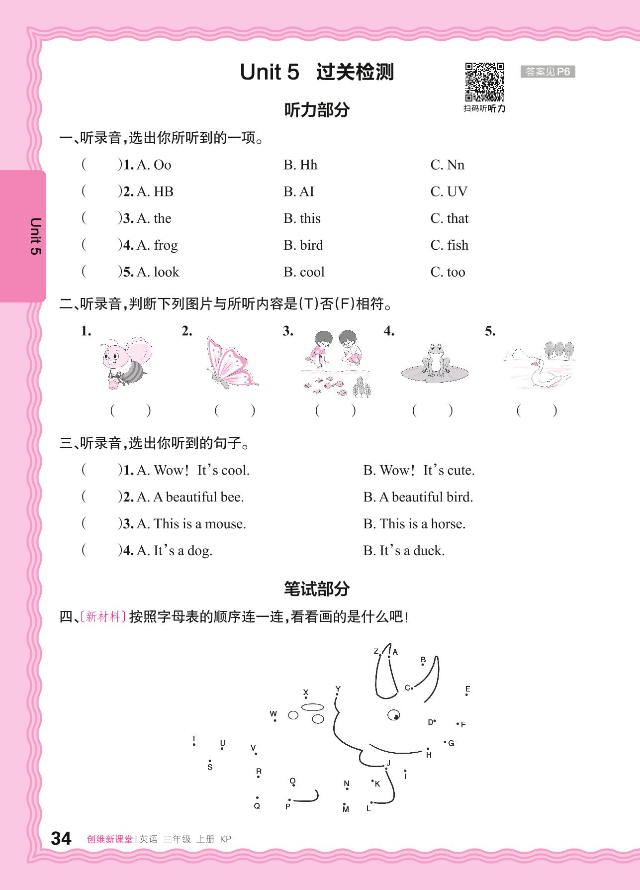 2024秋上册三年级英语科普版 Unit 5 过关检测