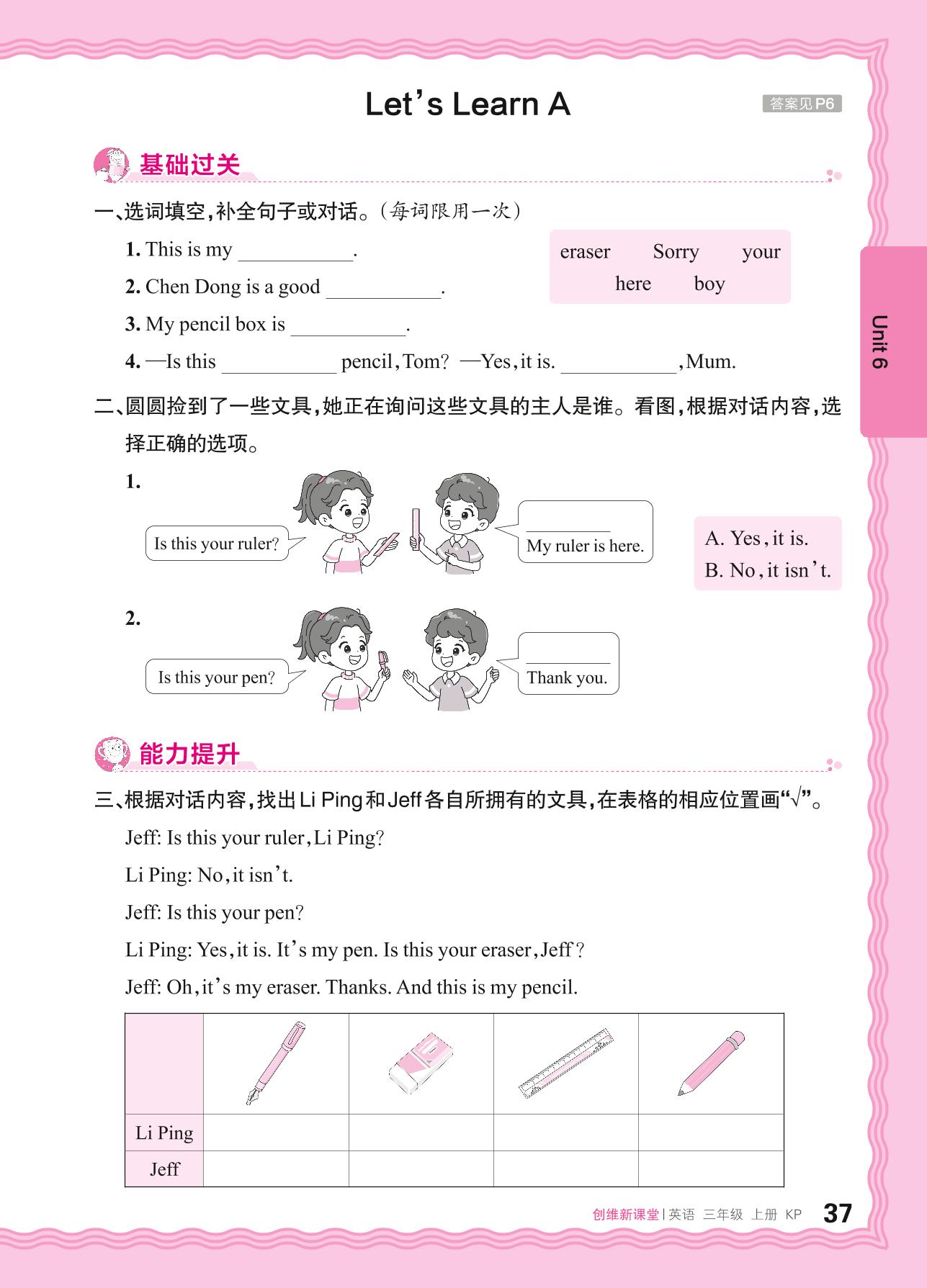 2024秋上册三年级英语科普版 Unit 6—Let's Learn A