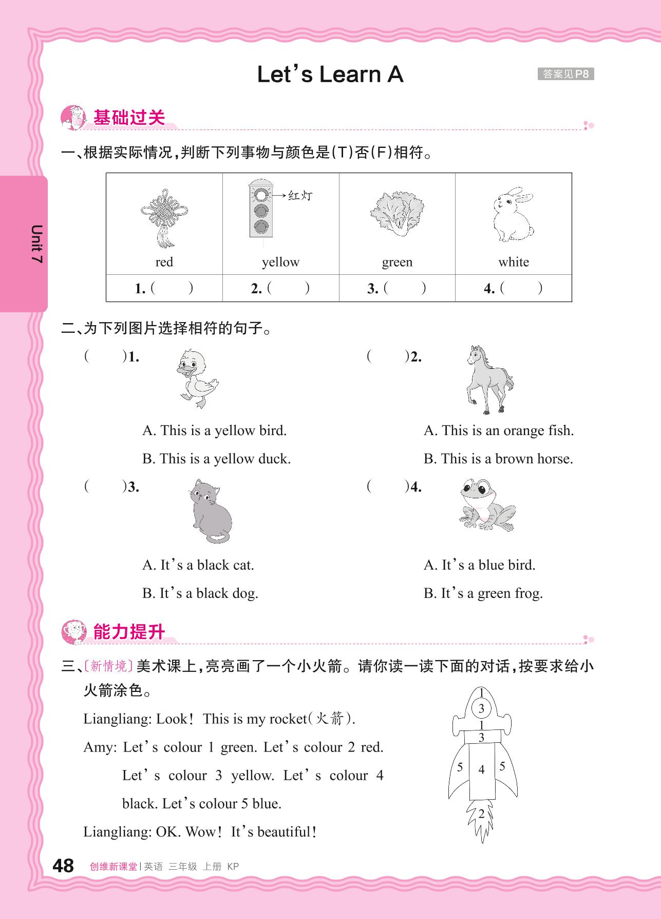 2024秋上册三年级英语科普版 Unit 7—Let's Learn A