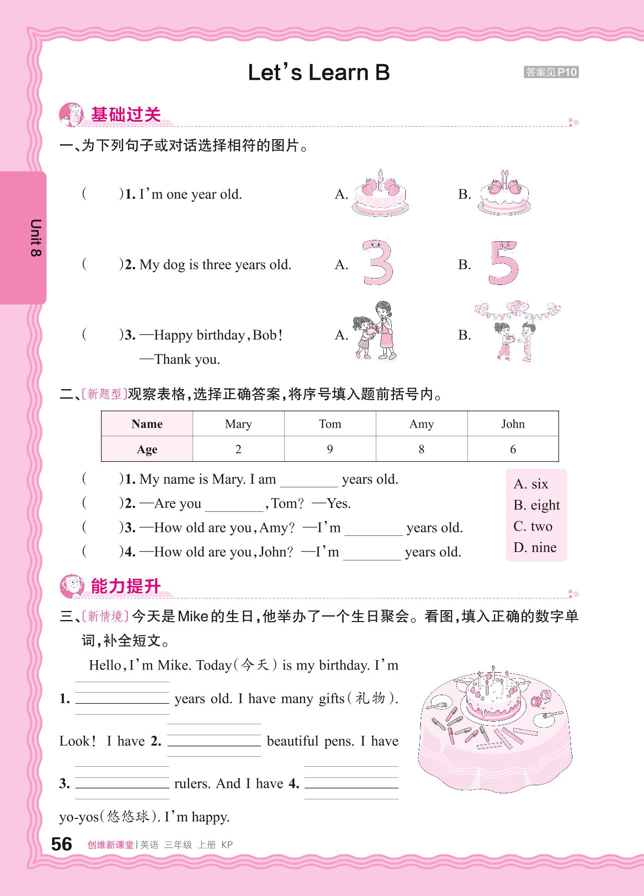 2024秋上册三年级英语科普版 Unit 8—Let's Learn B