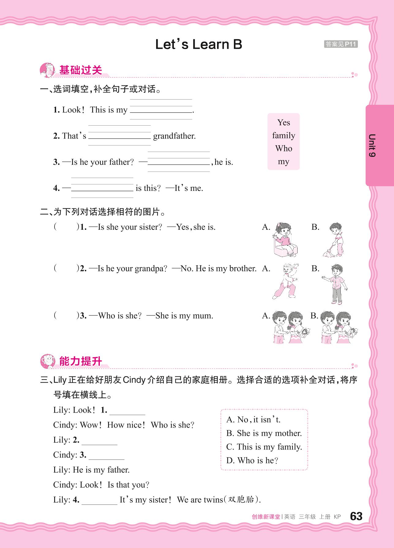 2024秋上册三年级英语科普版 Unit 9—Let's Learn B