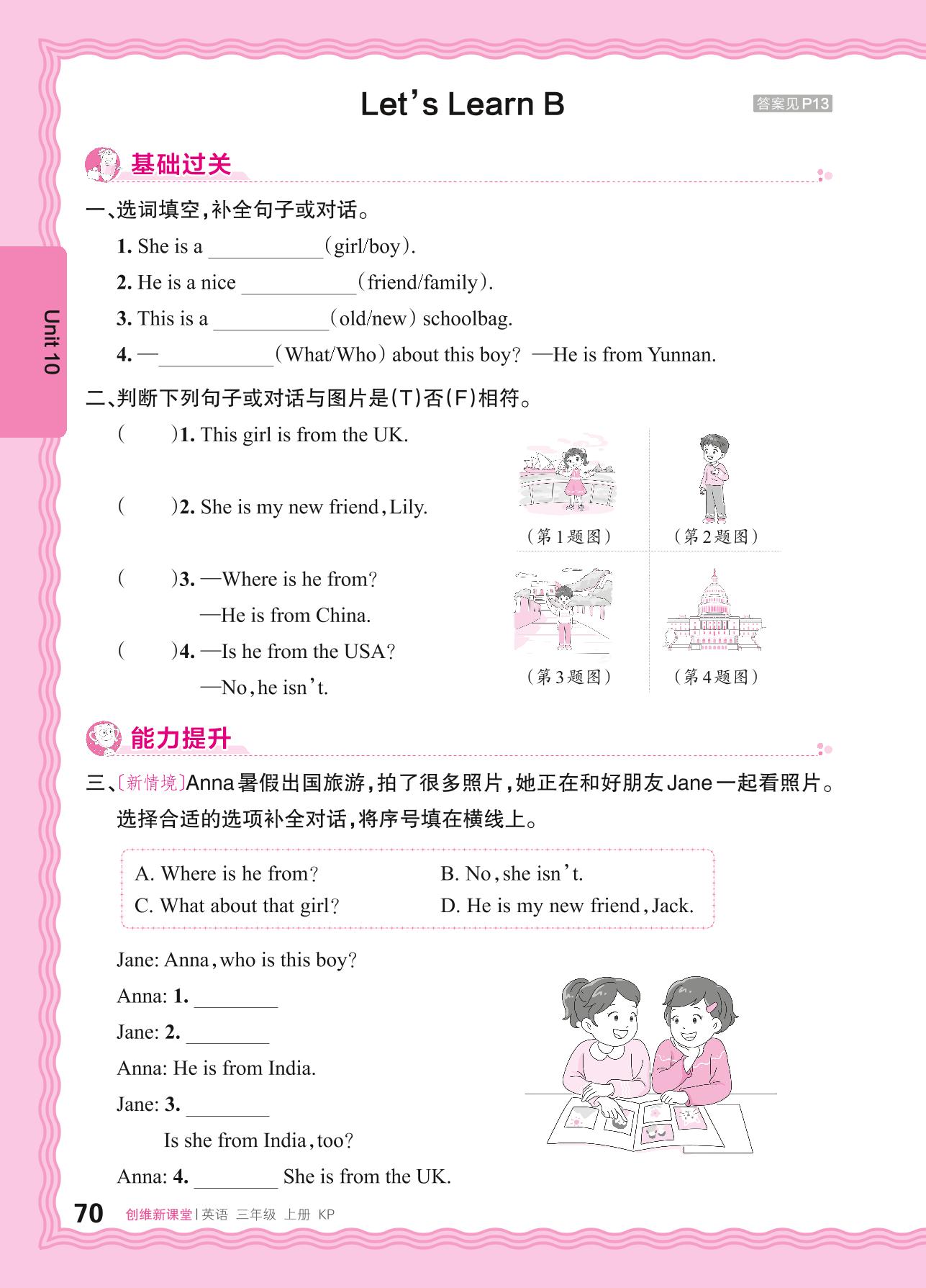 2024秋上册三年级英语科普版 Unit 10—Let's Learn B