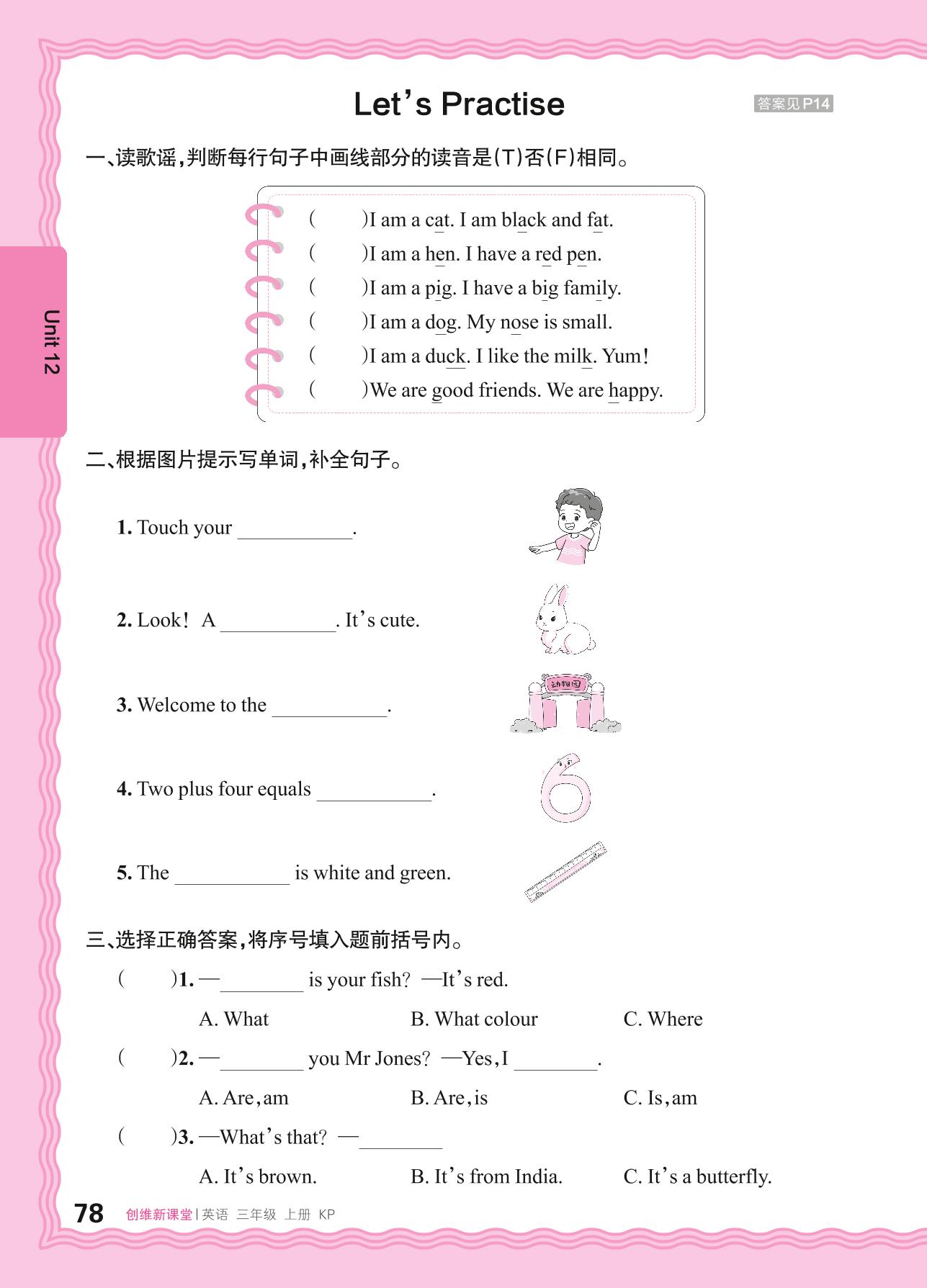 2024秋上册三年级英语科普版 Unit 12—Let's Practise
