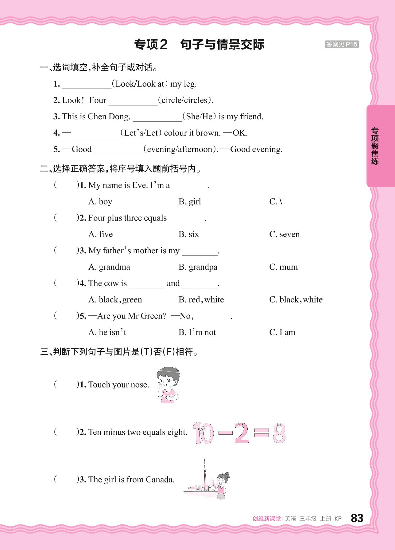 2024秋上册三年级英语科普版 期末专项聚焦练——句子与情景交际【2】