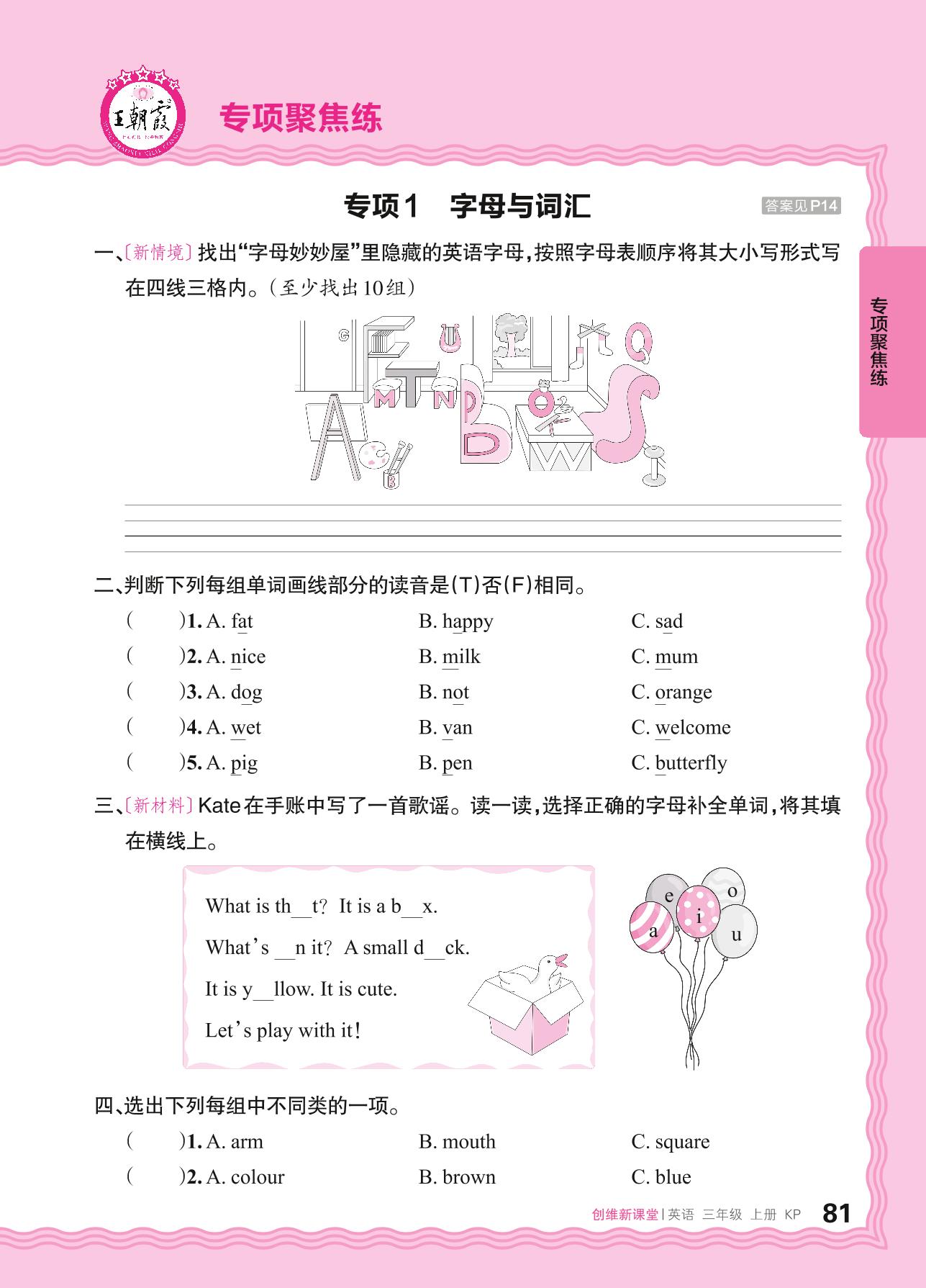 2024秋上册三年级英语科普版 期末专项聚焦练——字母与词汇【1】