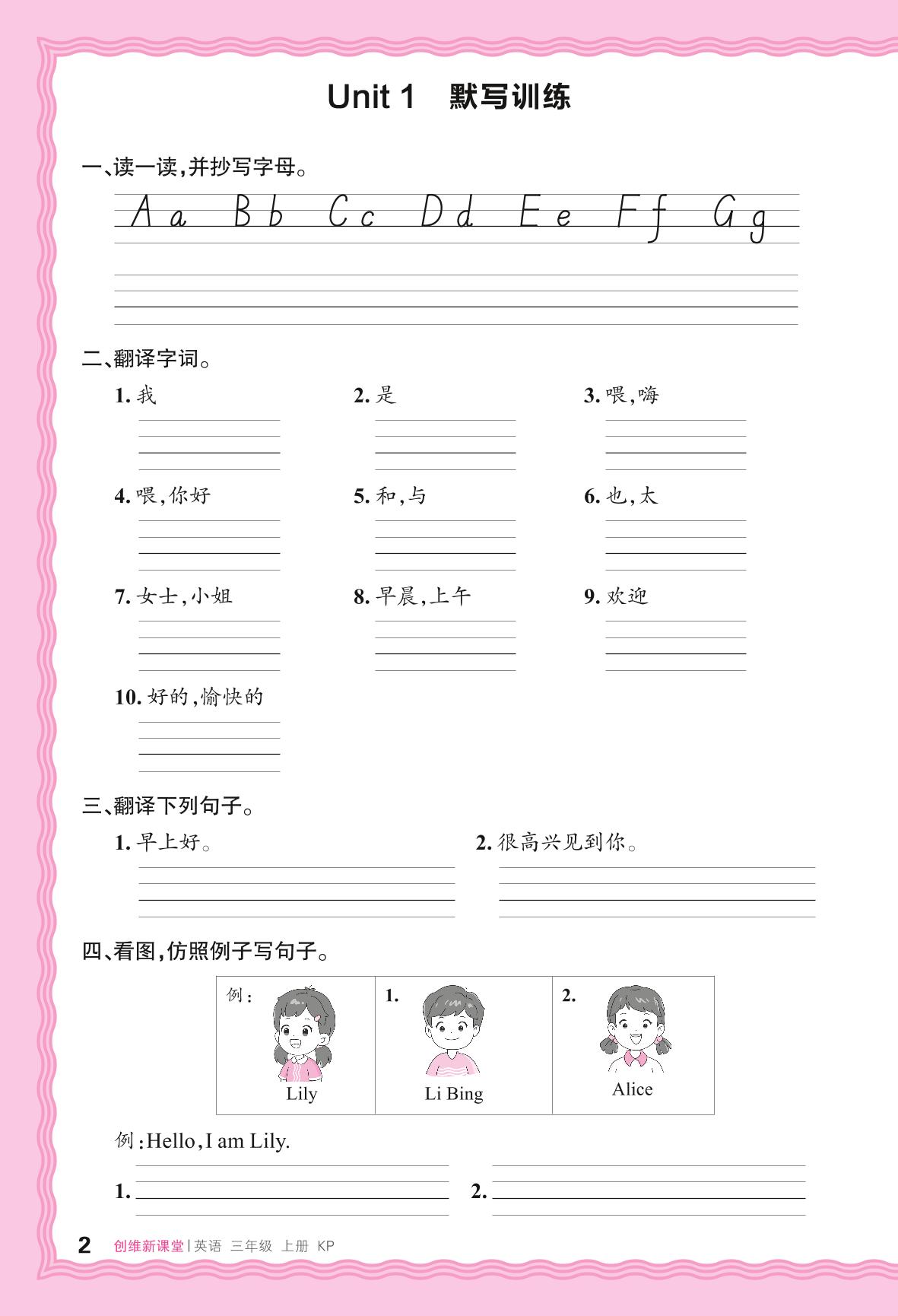 2024秋上册三年级英语科普版 Unit 1 默写训练
