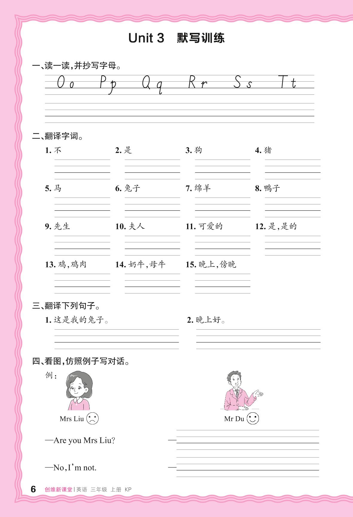 2024秋上册三年级英语科普版 Unit 3 默写训练