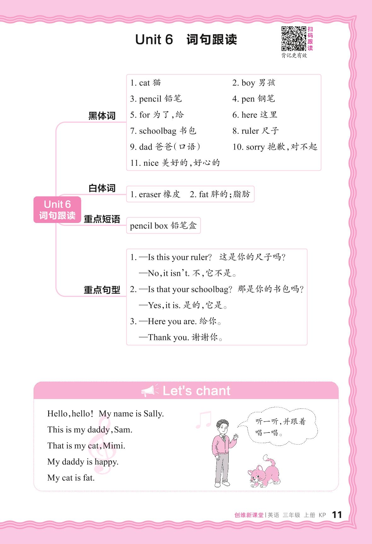 2024秋上册三年级英语科普版 Unit 6 词句跟读