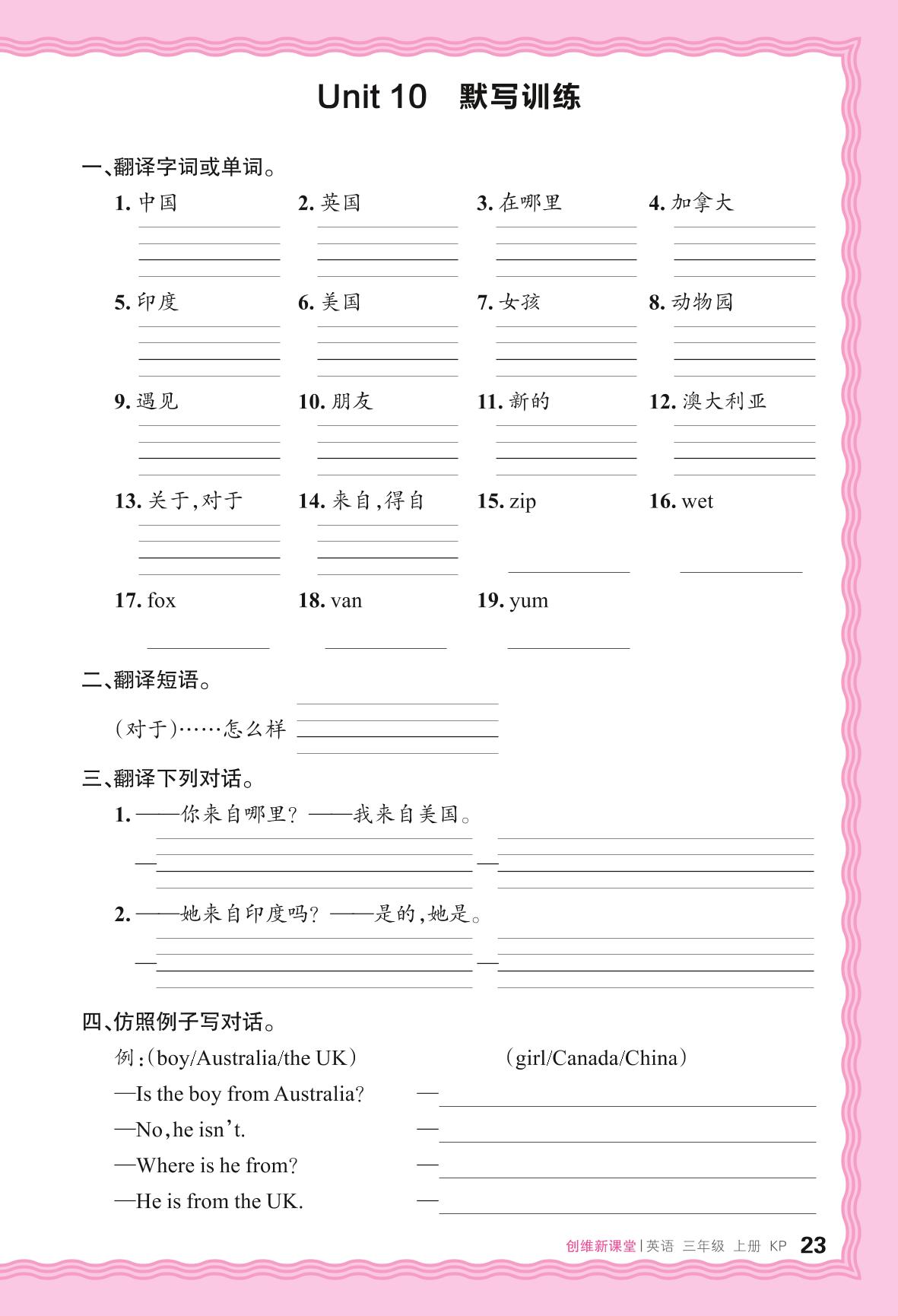 2024秋上册三年级英语科普版 Unit 10 默写训练