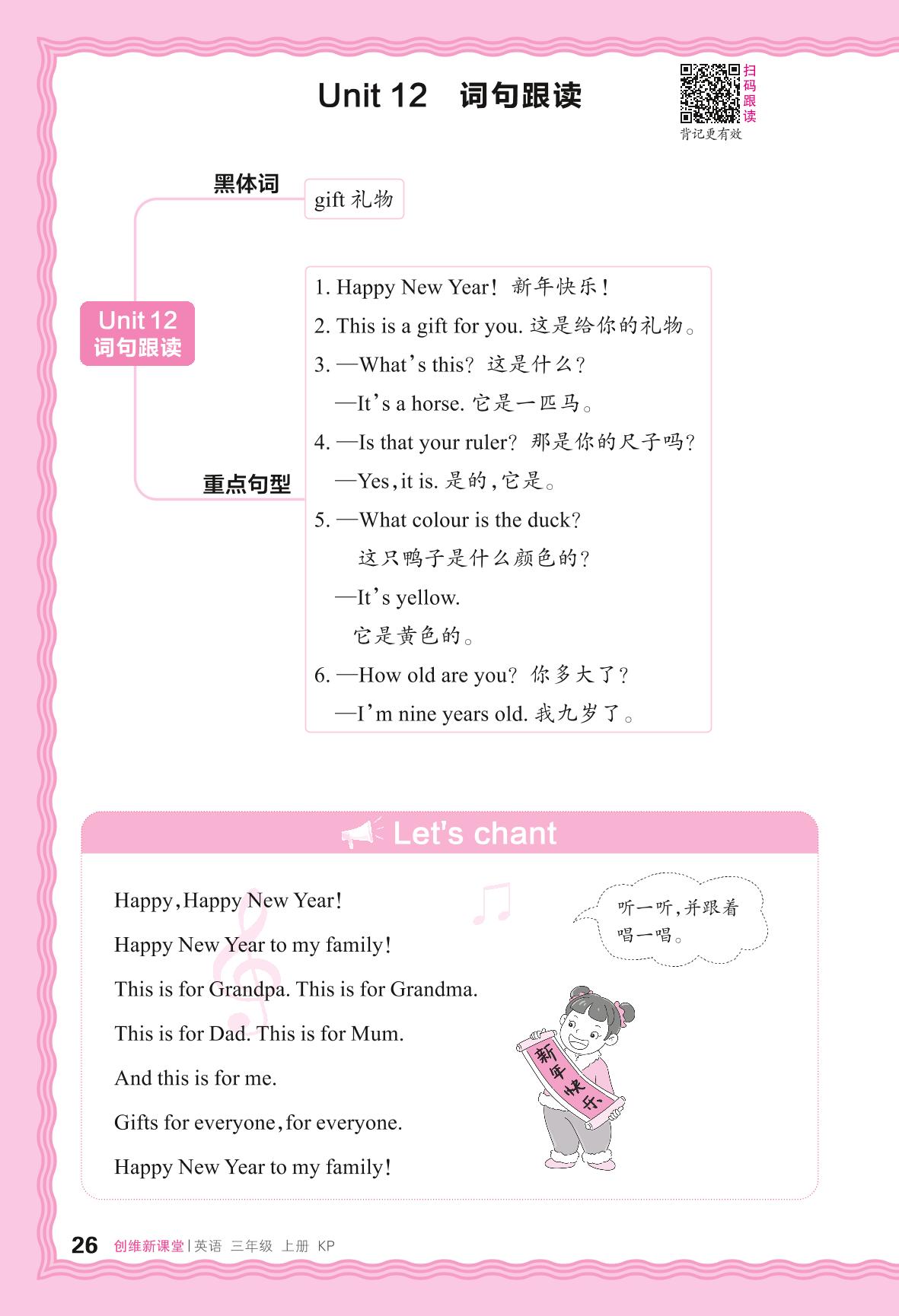 2024秋上册三年级英语科普版 Unit 12 词句跟读