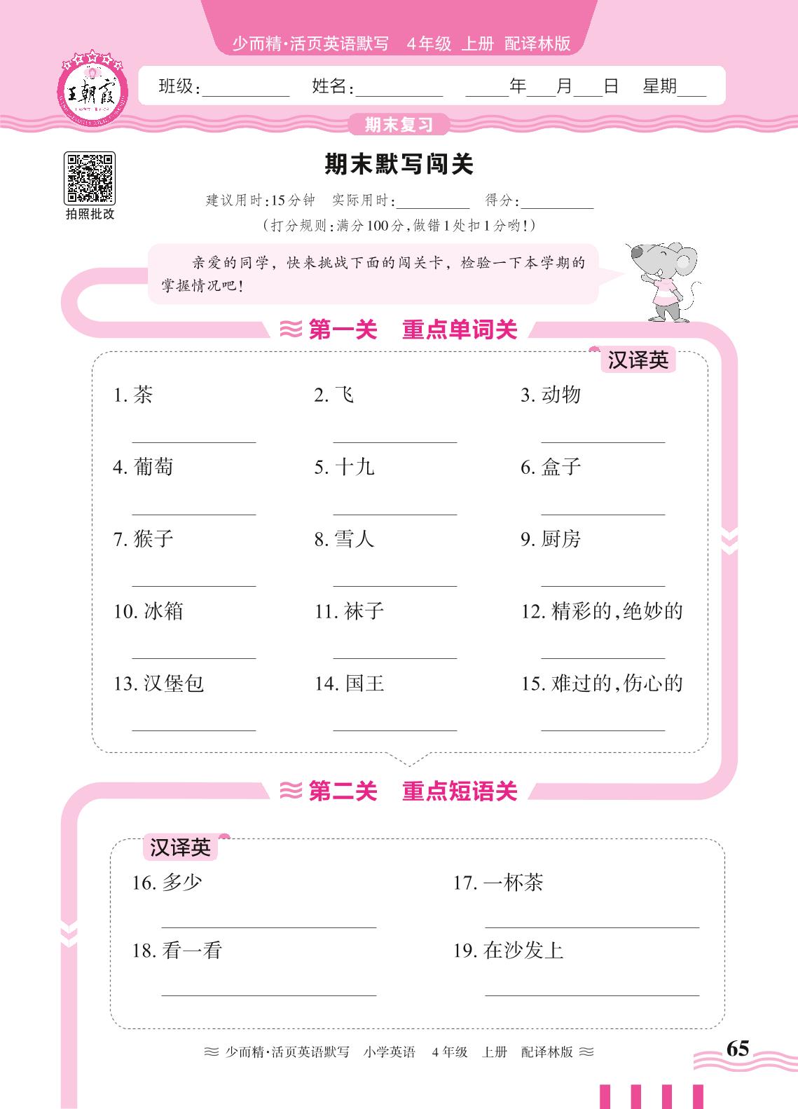 2024秋上册四年级英语译林版(三起始) 期末默写闯关