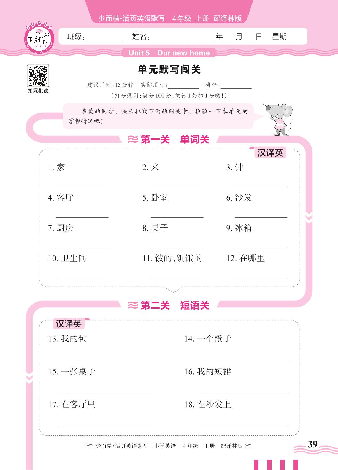 2024秋上册四年级英语译林版(三起始) Unit 5 单元默写闯关