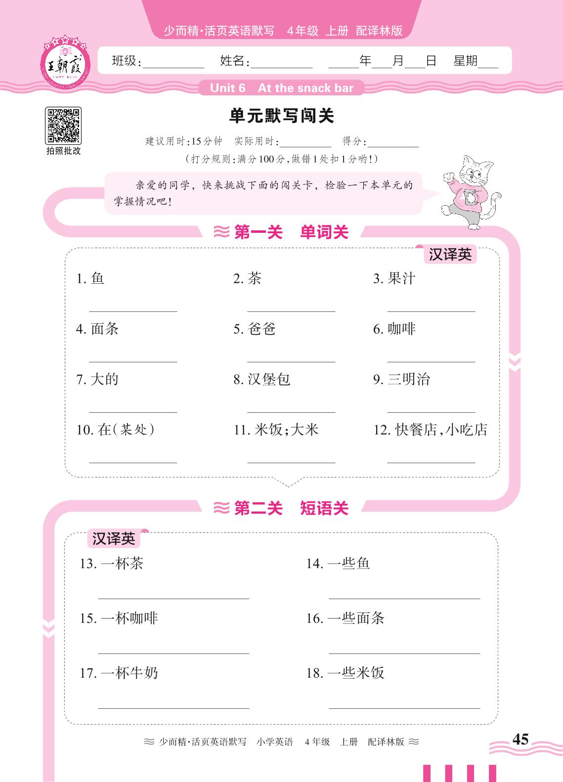 2024秋上册四年级英语译林版(三起始) Unit 6 单元默写闯关