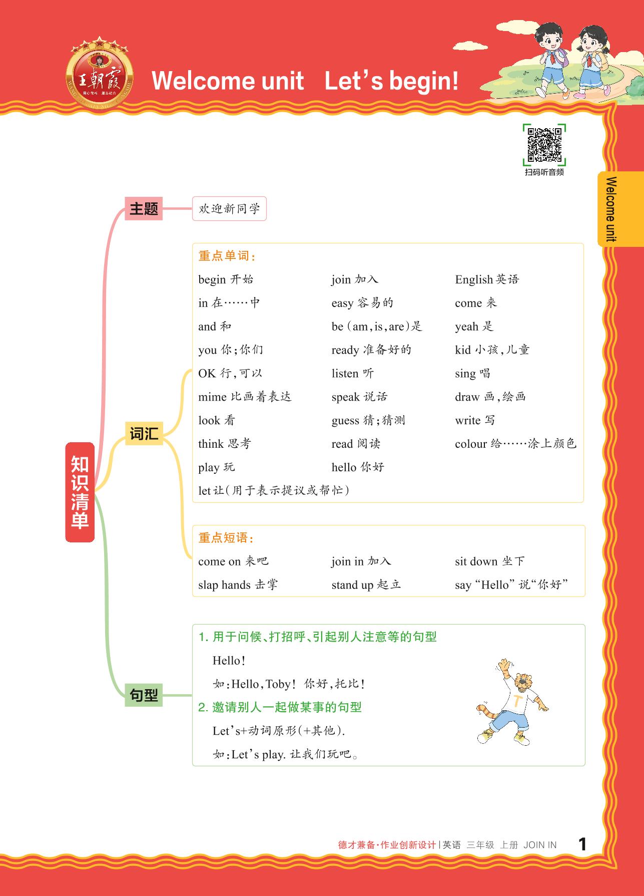 2024秋上册三年级英语剑桥版 Welcome unit 知识清单