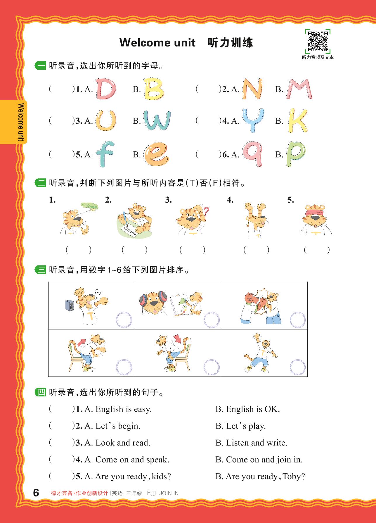 2024秋上册三年级英语剑桥版 Welcome unit 听力训练