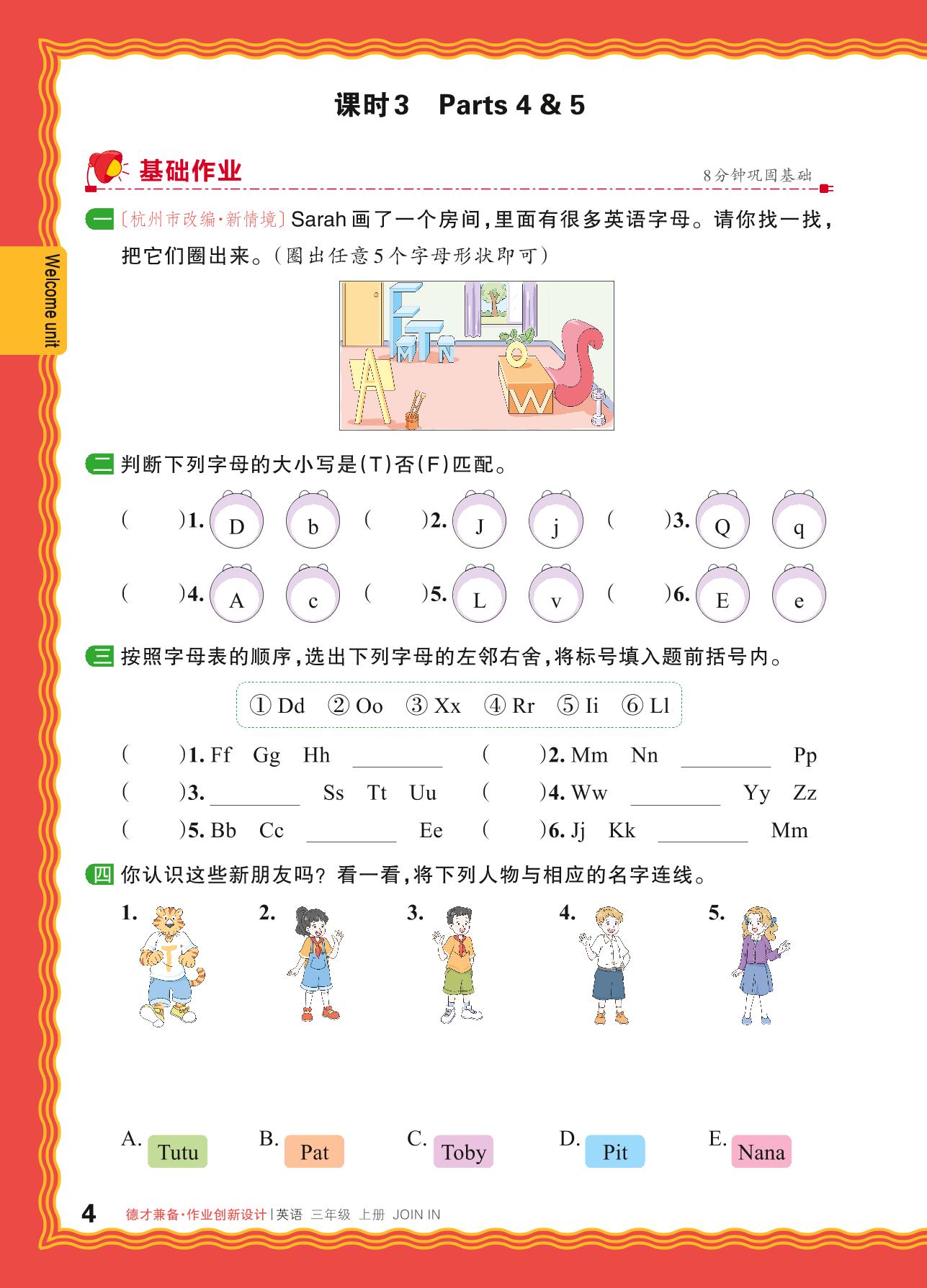 2024秋上册三年级英语剑桥版 Welcome unit—课时 3 Parts 4 & 5