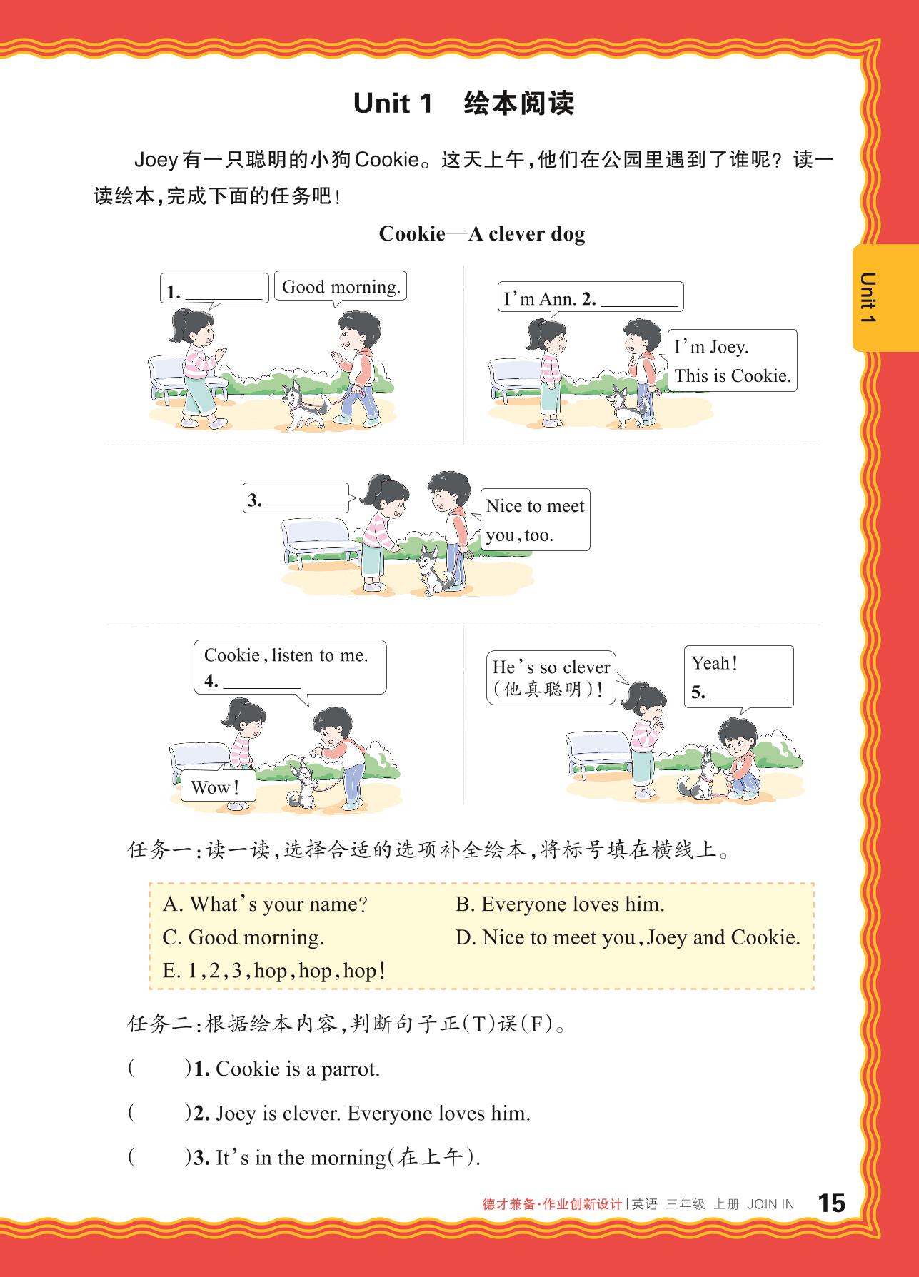 2024秋上册三年级英语剑桥版 Unit 1 绘本阅读