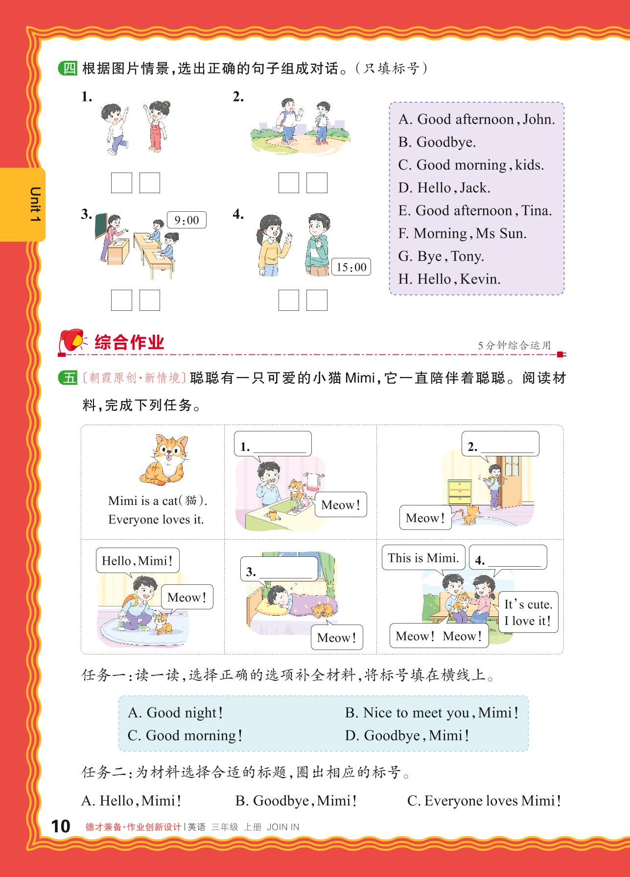 三年级英语剑桥版(2024)上册课时作业