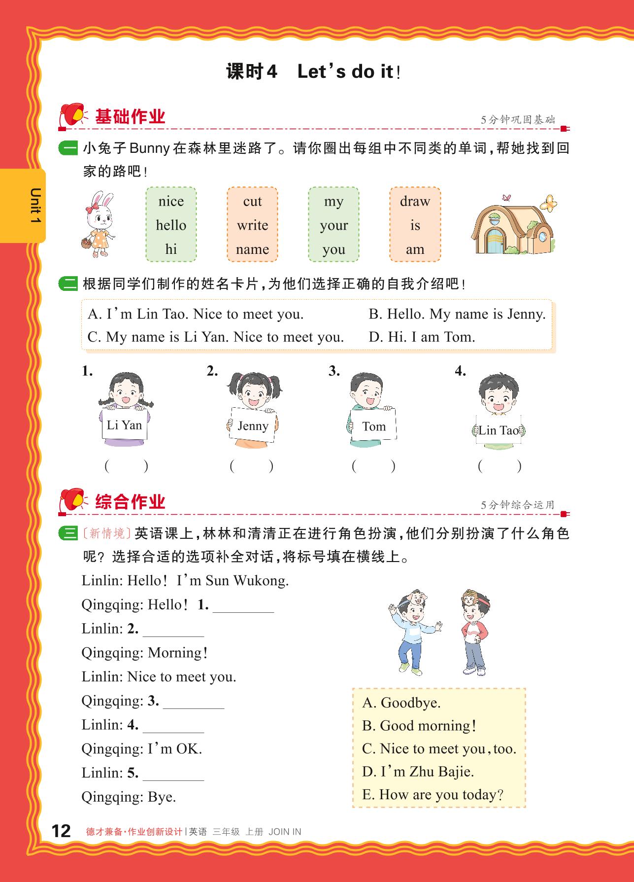 2024秋上册三年级英语剑桥版 Unit 1—课时 4 Let's do it!